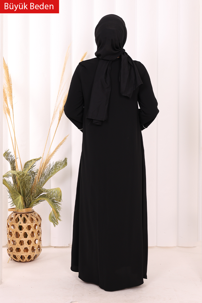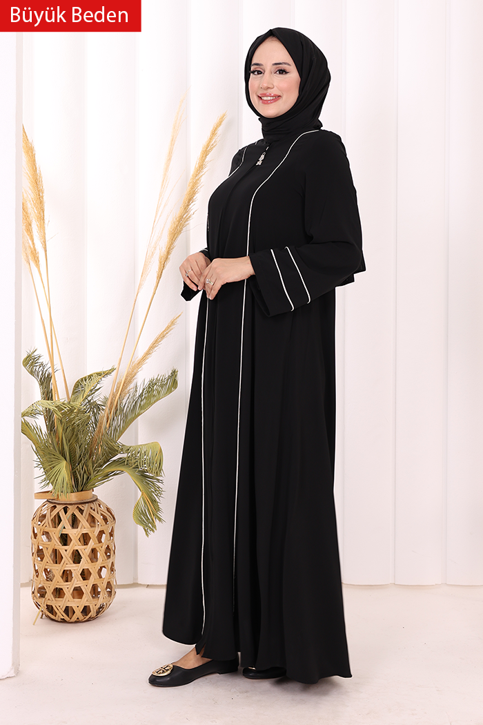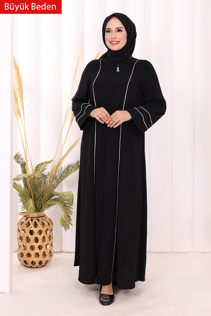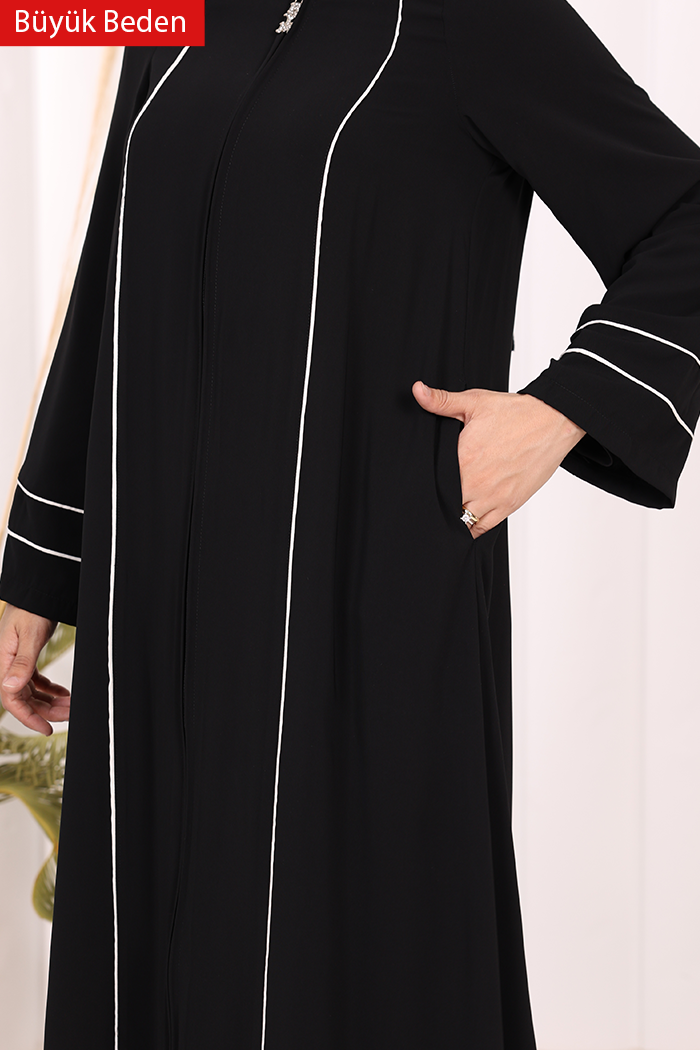 Çizgi Detaylı Boydan Fermuarlı Tam Boy Ferace