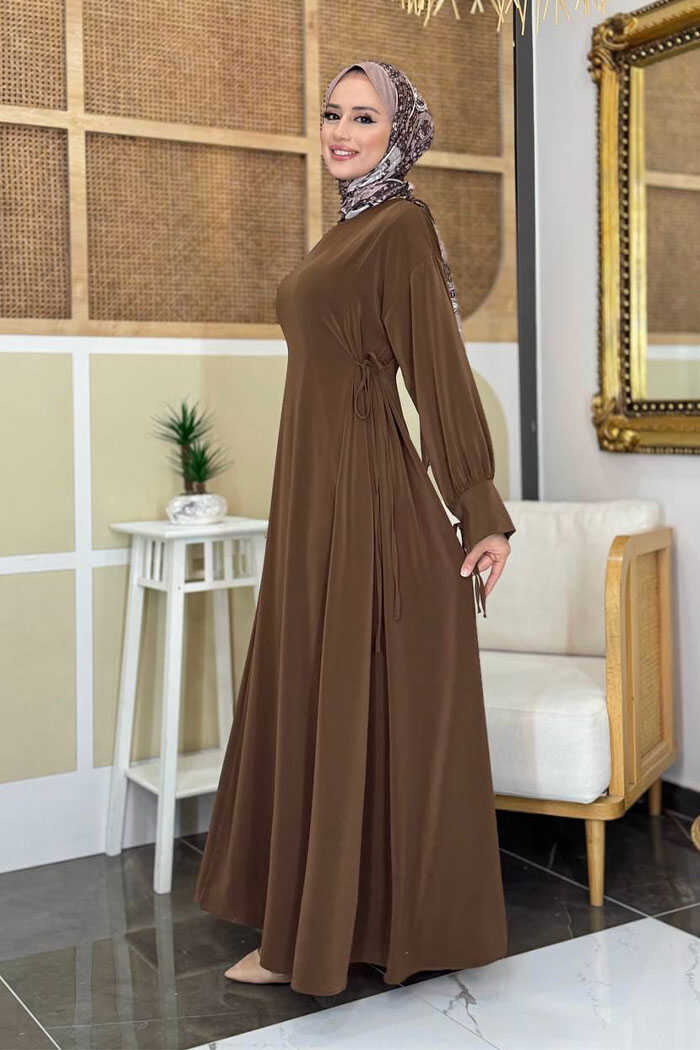 Bağlama Detaylı Elbise 6015 Kahverengi