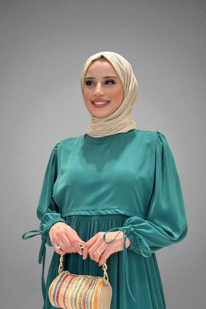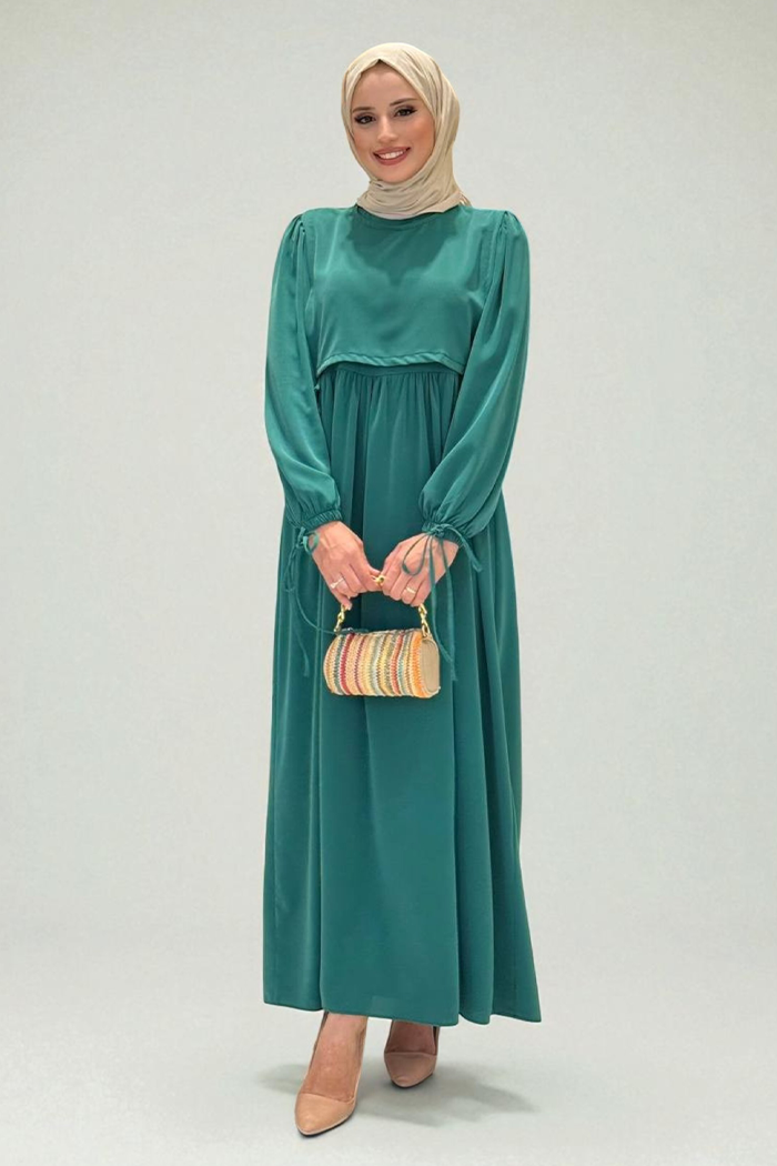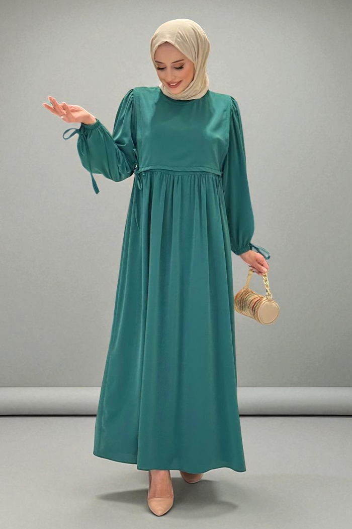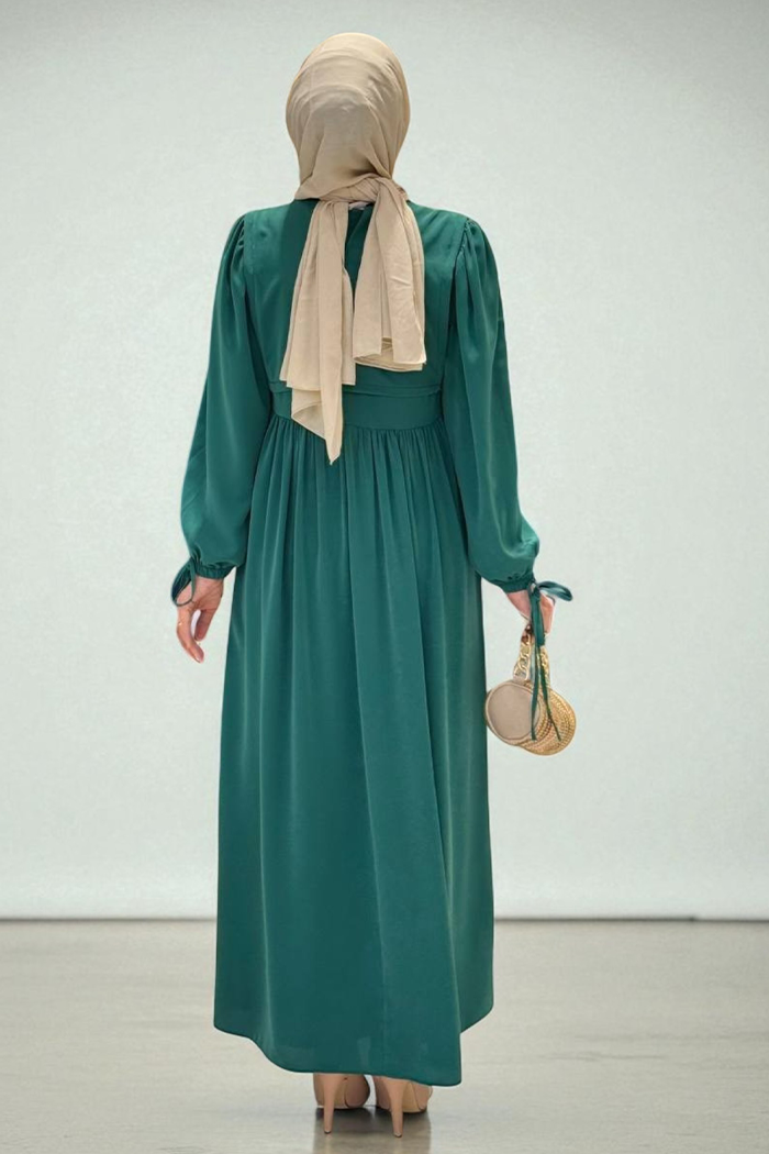 Bağlama Detaylı Elbise 6015 Zümrüt