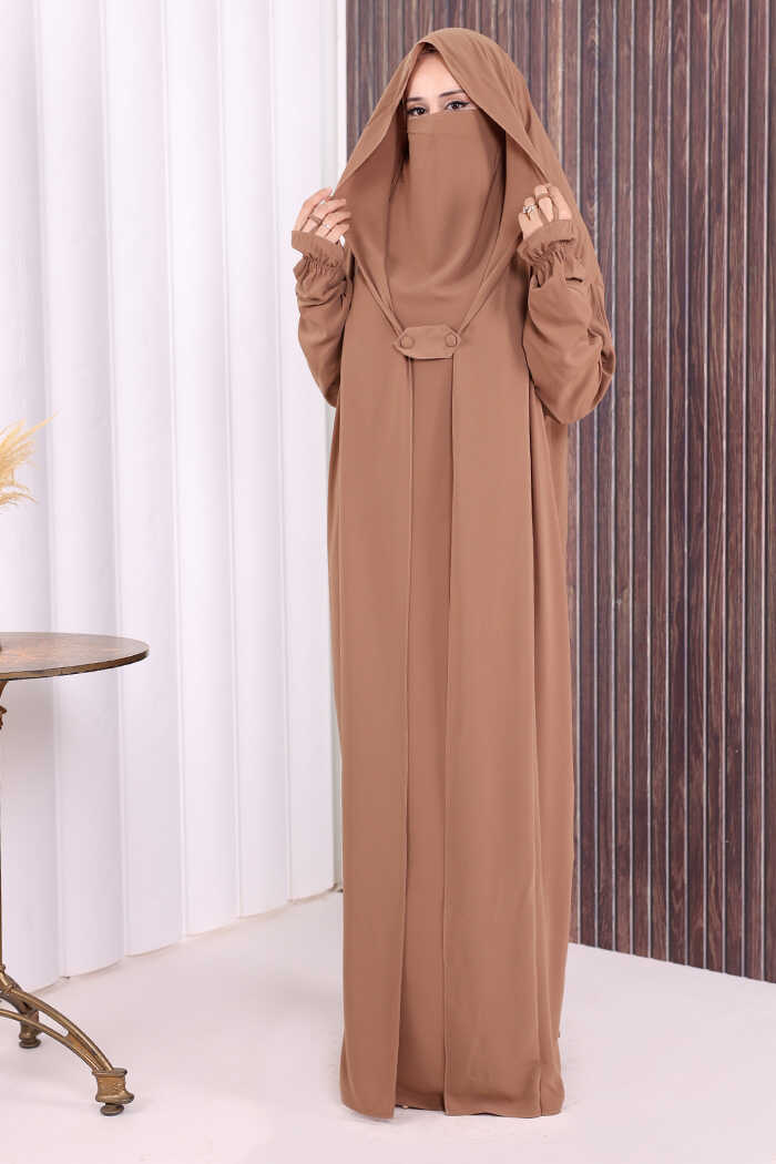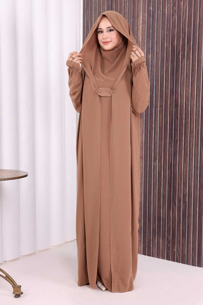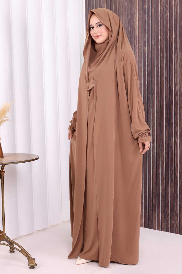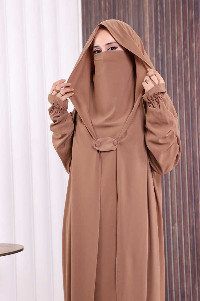 Kendinden Peçeli Sufleli Cilbab 6032 Vizon