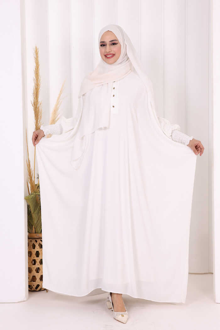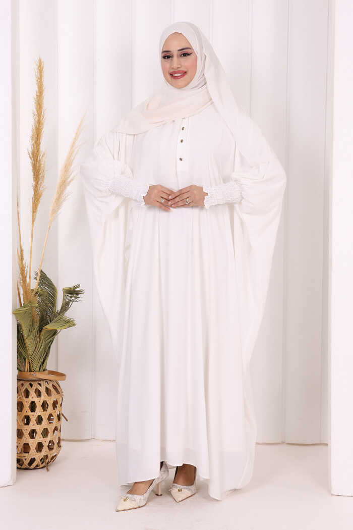 Düğme Detaylı Yarasakol Cilbab 6042 Ekru