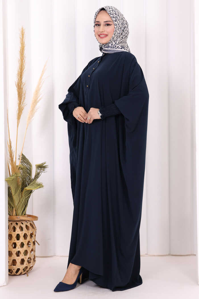 Düğme Detaylı Yarasakol Cilbab 6042 Lacivert