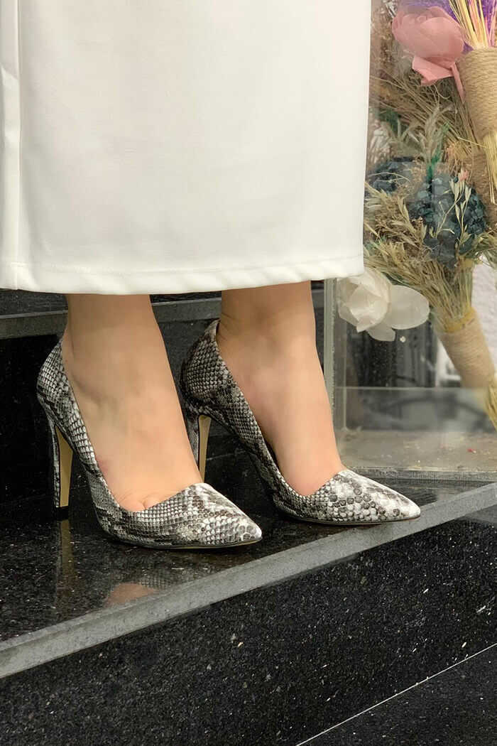 6540 Desenli Deri Stiletto Gri