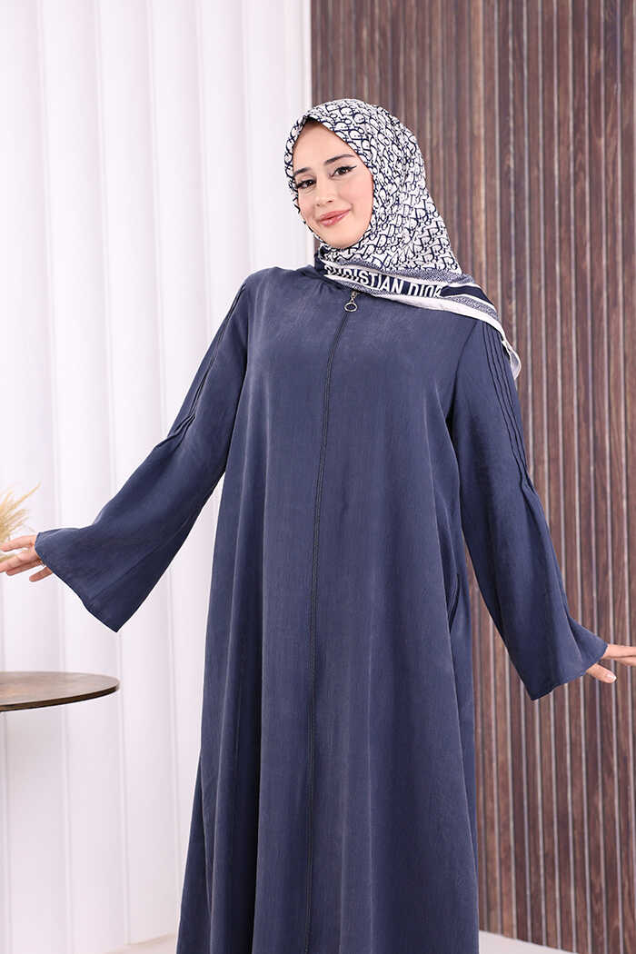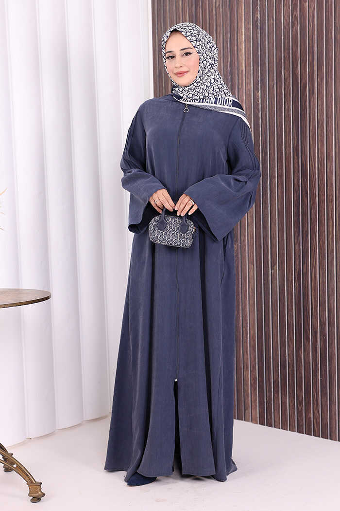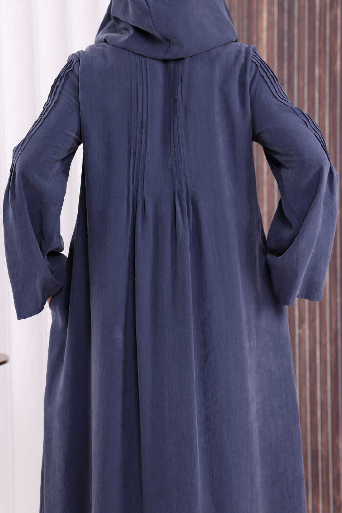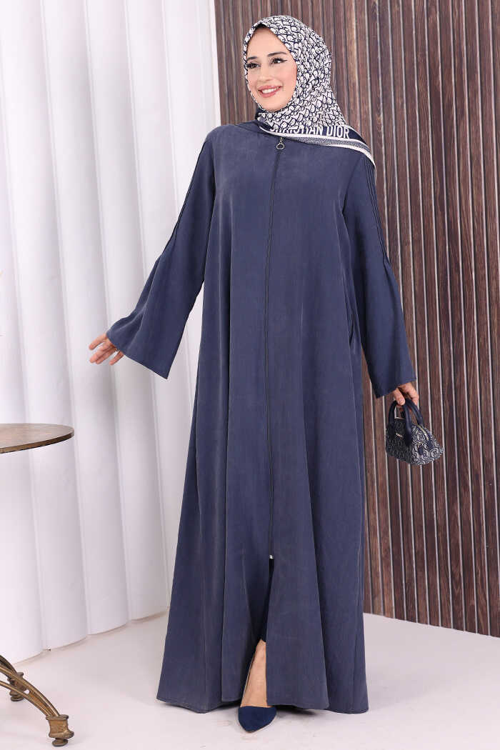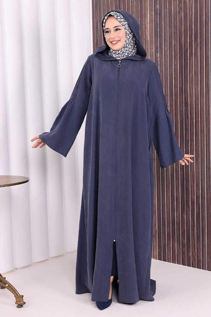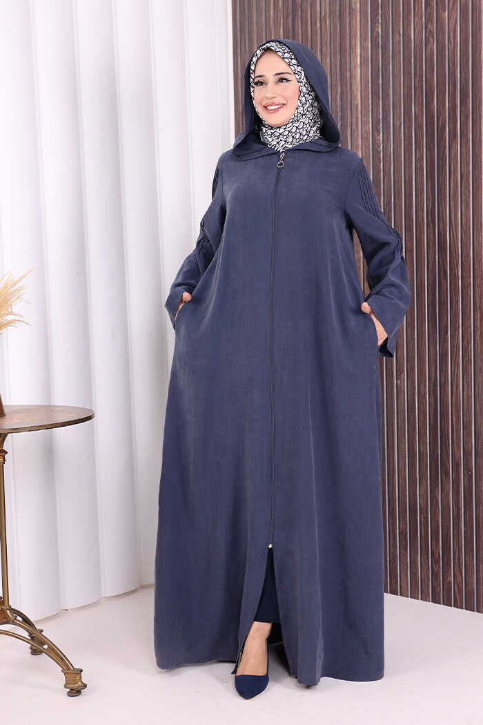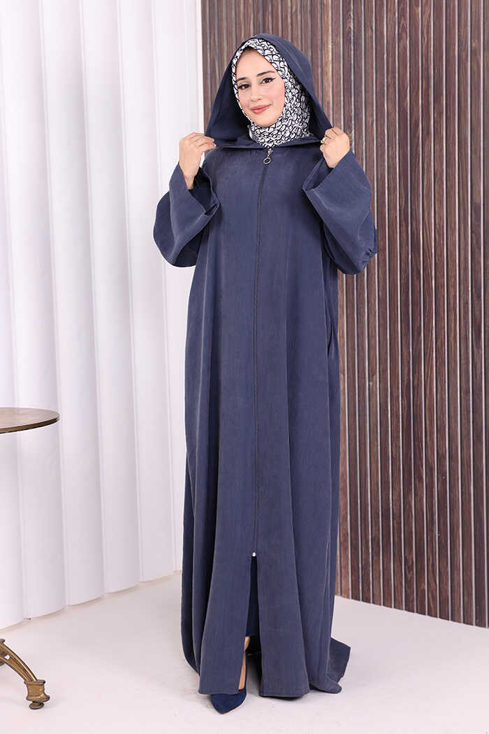 Fermuarlı Kapüşonlu Ferace 70016 Lacivert