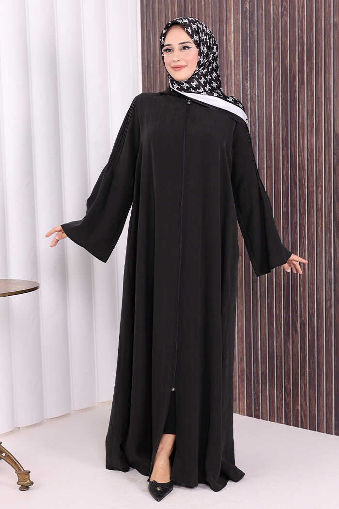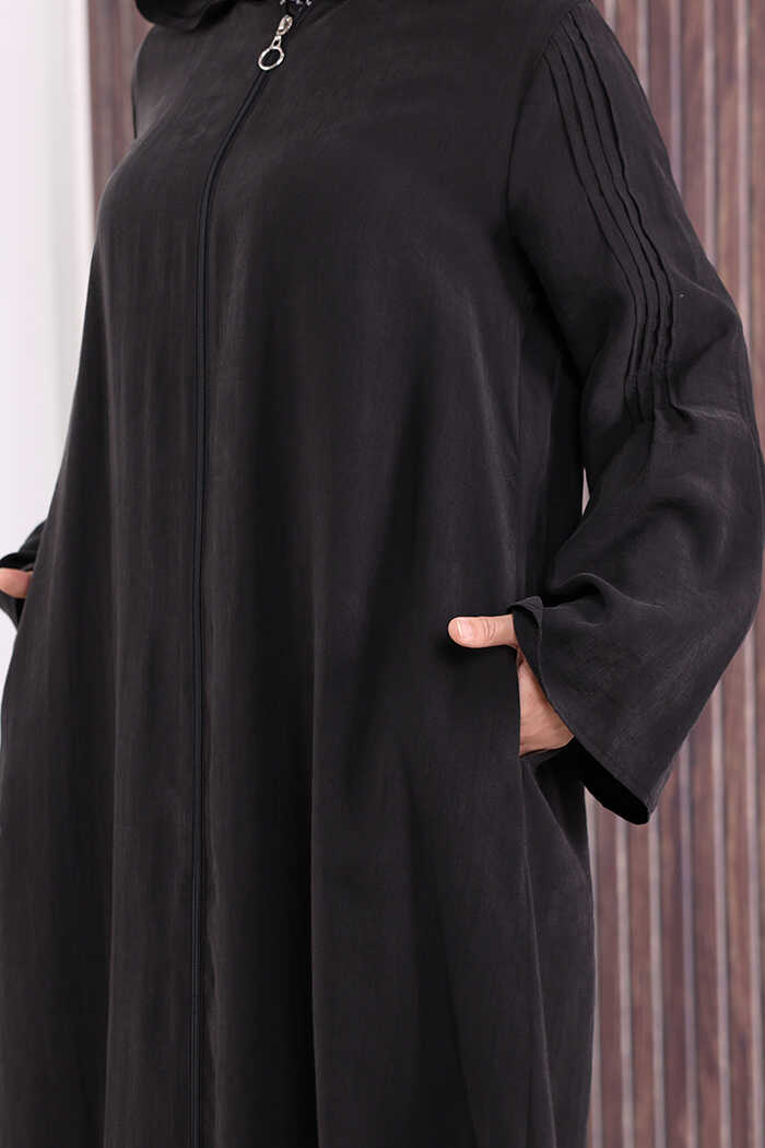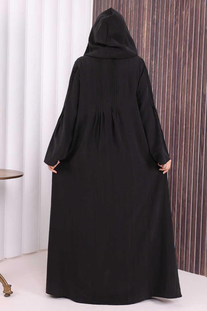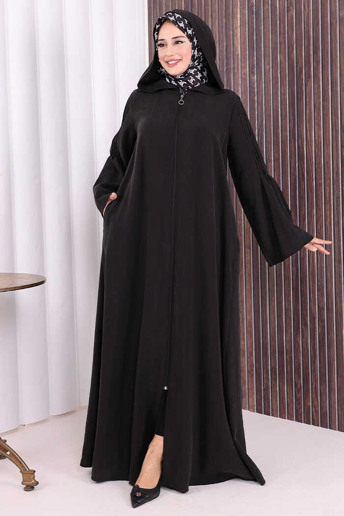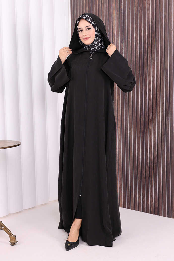 Fermuarlı Kapüşonlu Ferace 70016 Siyah