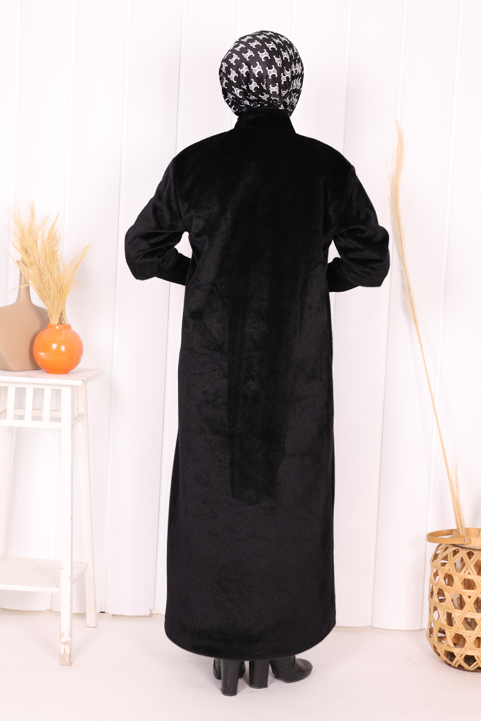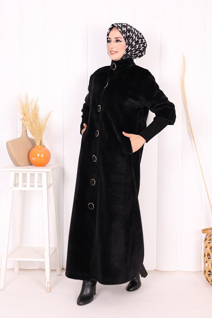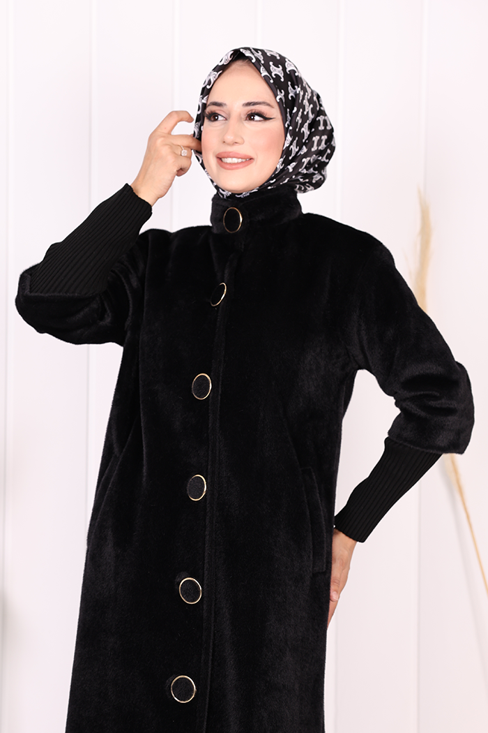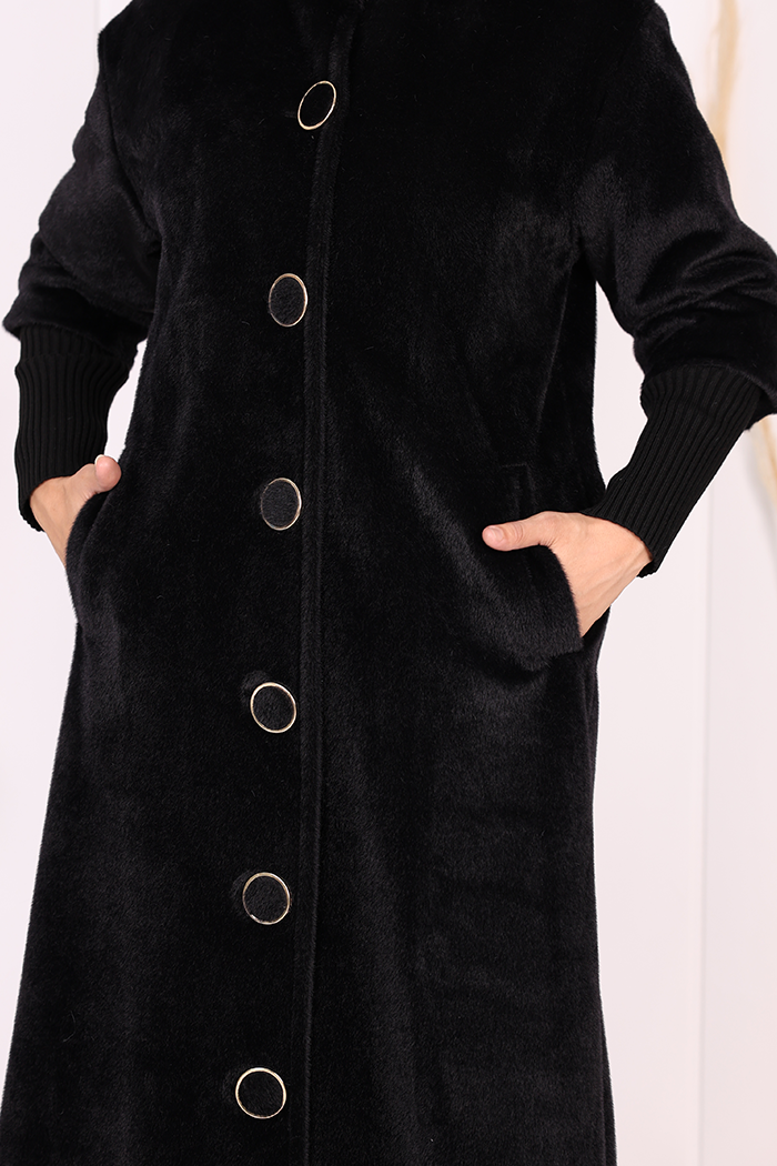 Düğme Detaylı Uzun Kaban 70048 Siyah