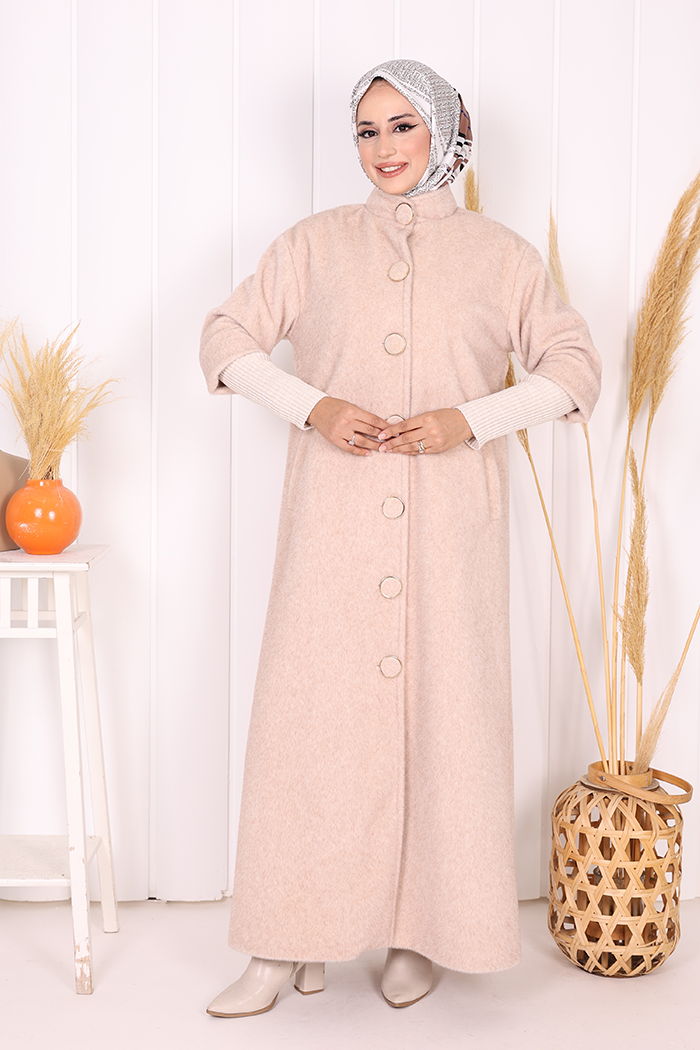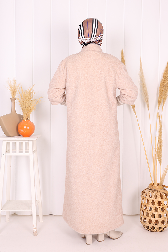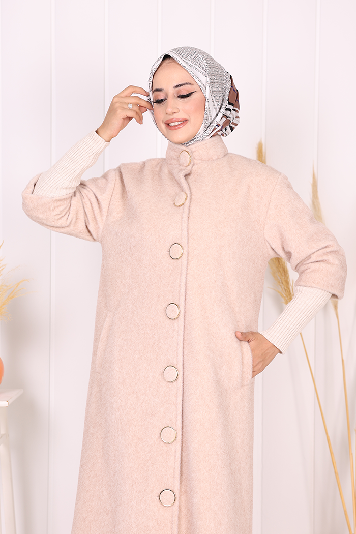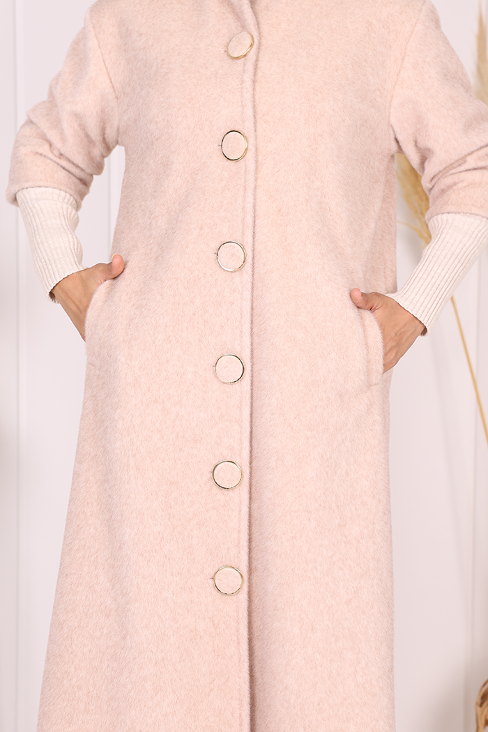 Düğme Detaylı Uzun Kaban 70048 Taş