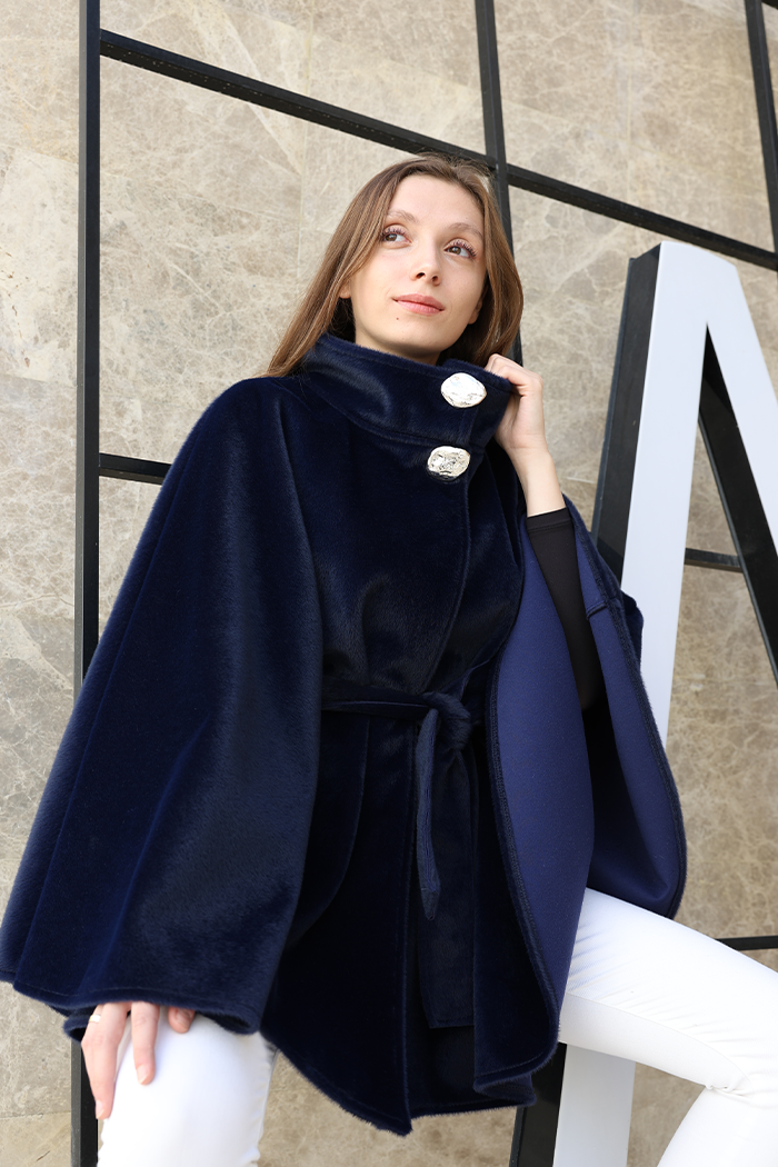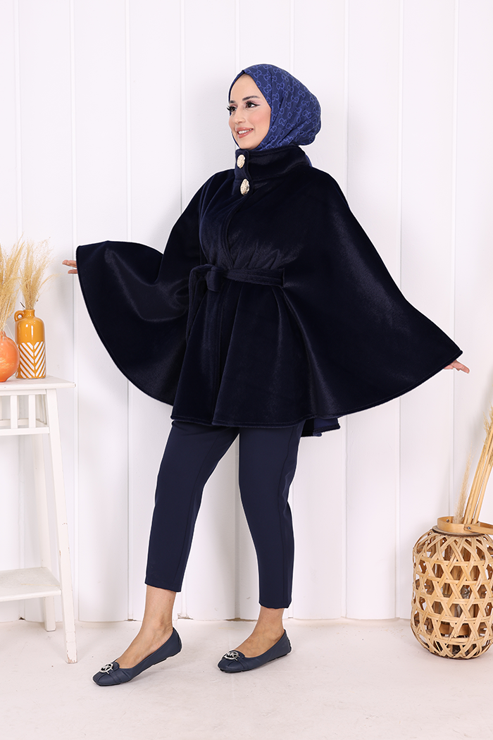 Düğme Detaylı Panço 70060 Lacivert