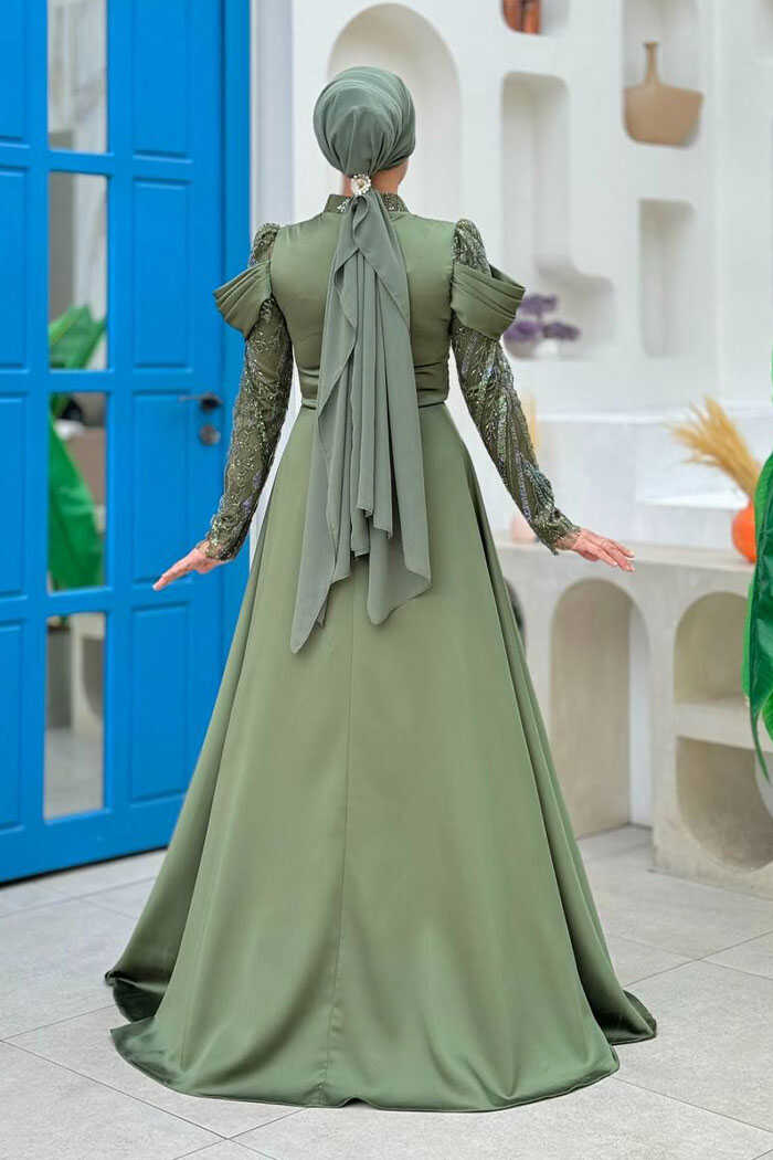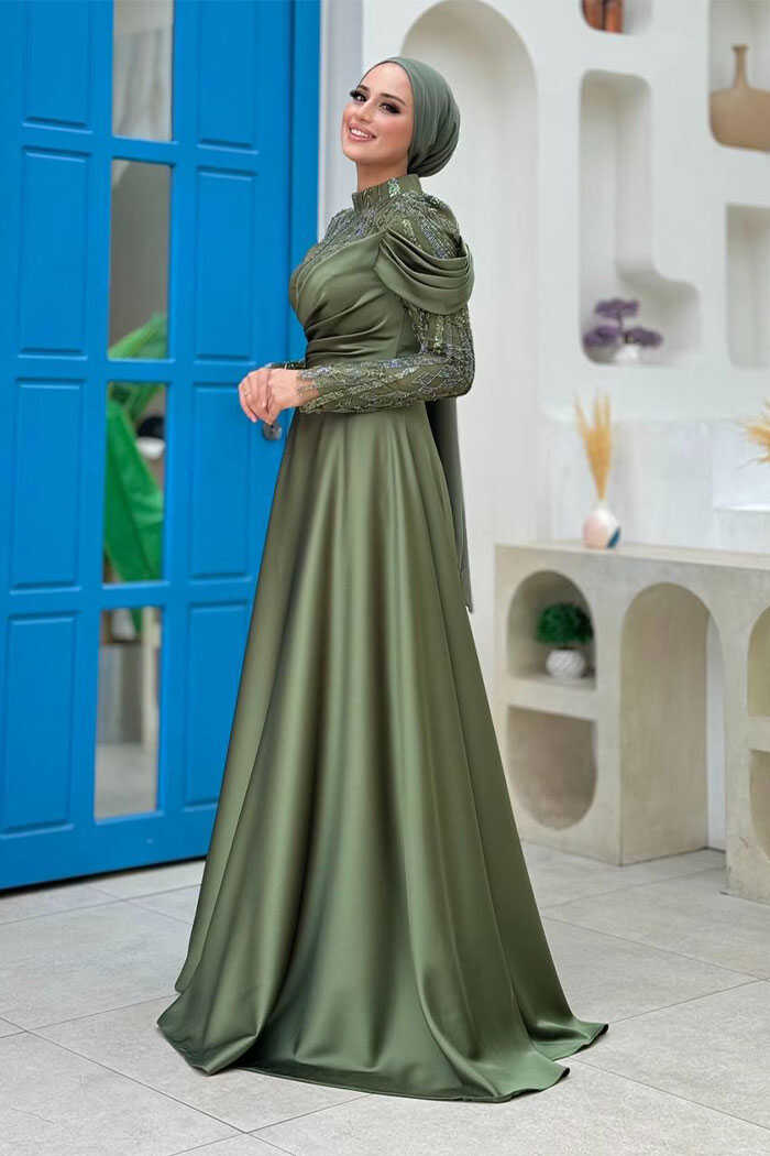 Omuz Detay Taş İşlemeli Ferace 7030 Zümrüt