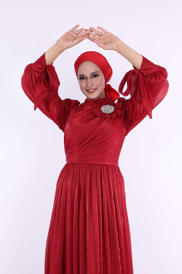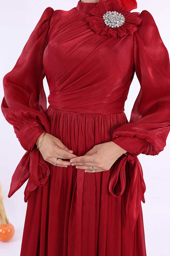 Çiçek Detaylı Valentino Abiye 7139 Bordo