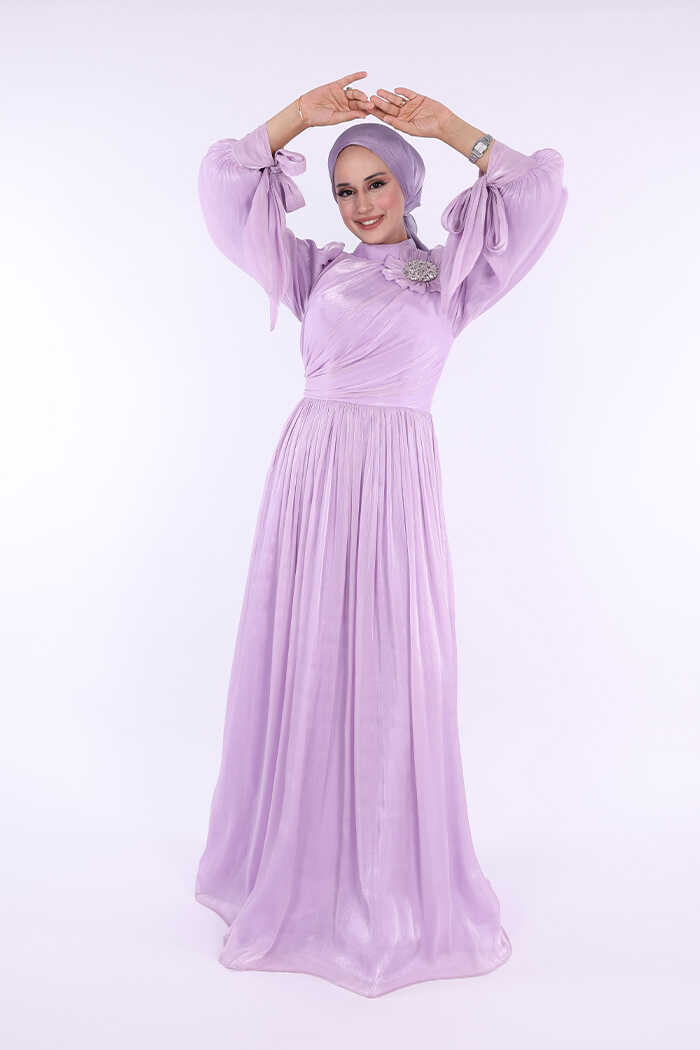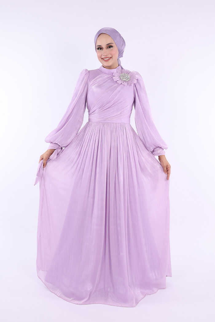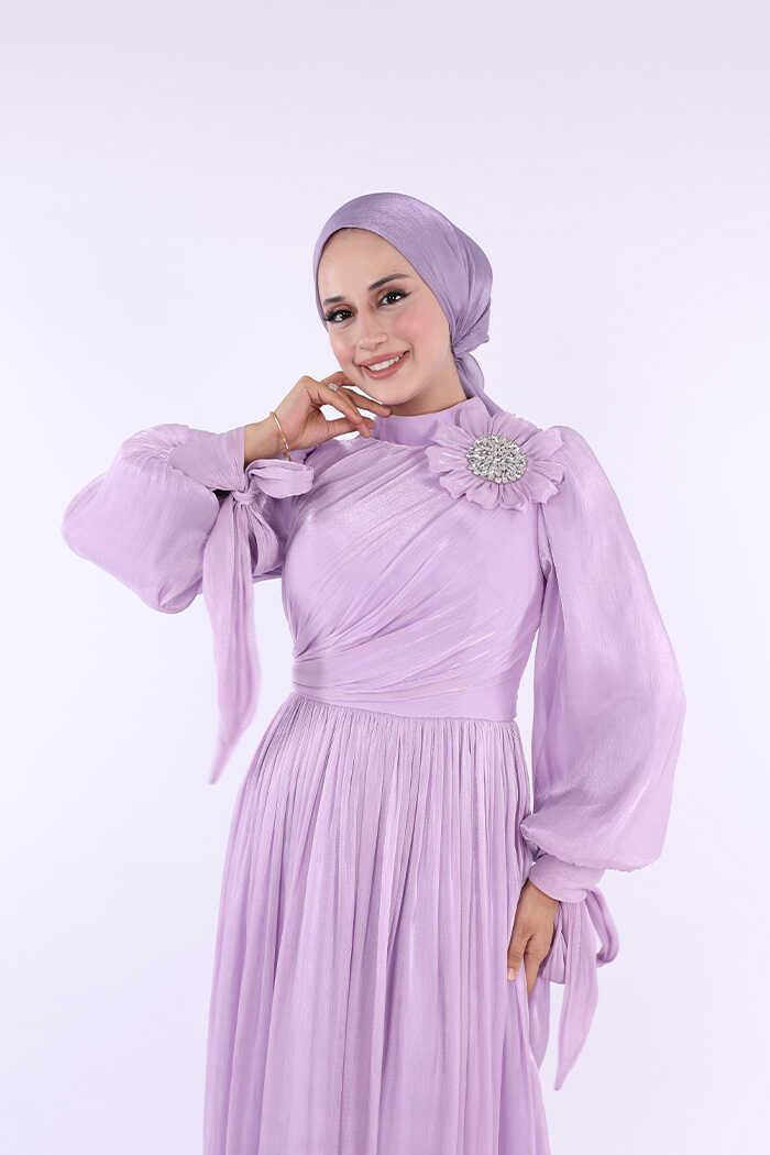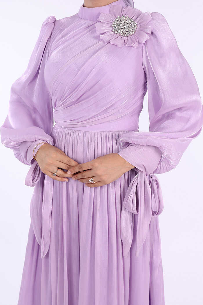 Çiçek Detaylı Valentino Abiye 7139 Lila