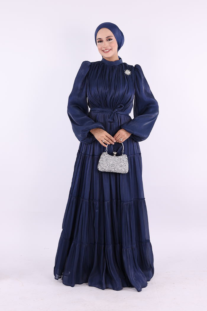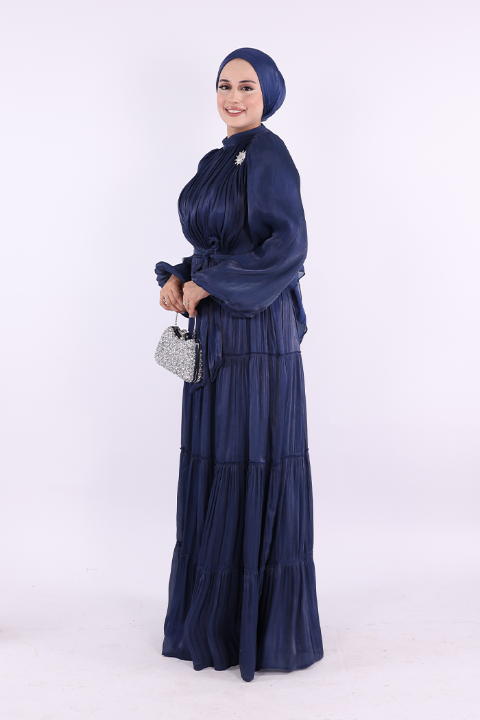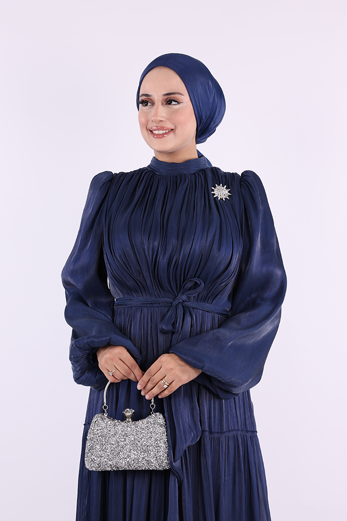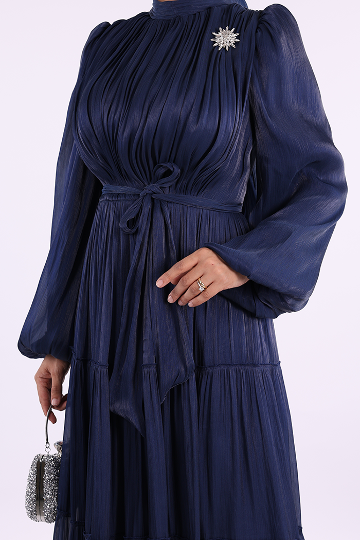 Broş Detaylı Valentino Abiye 7141 Lacivert