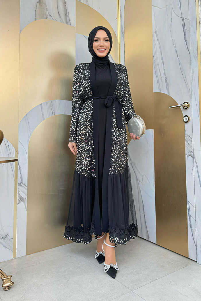 ABAYA MIT PAILLETTEN-TÜLLDETAIL
