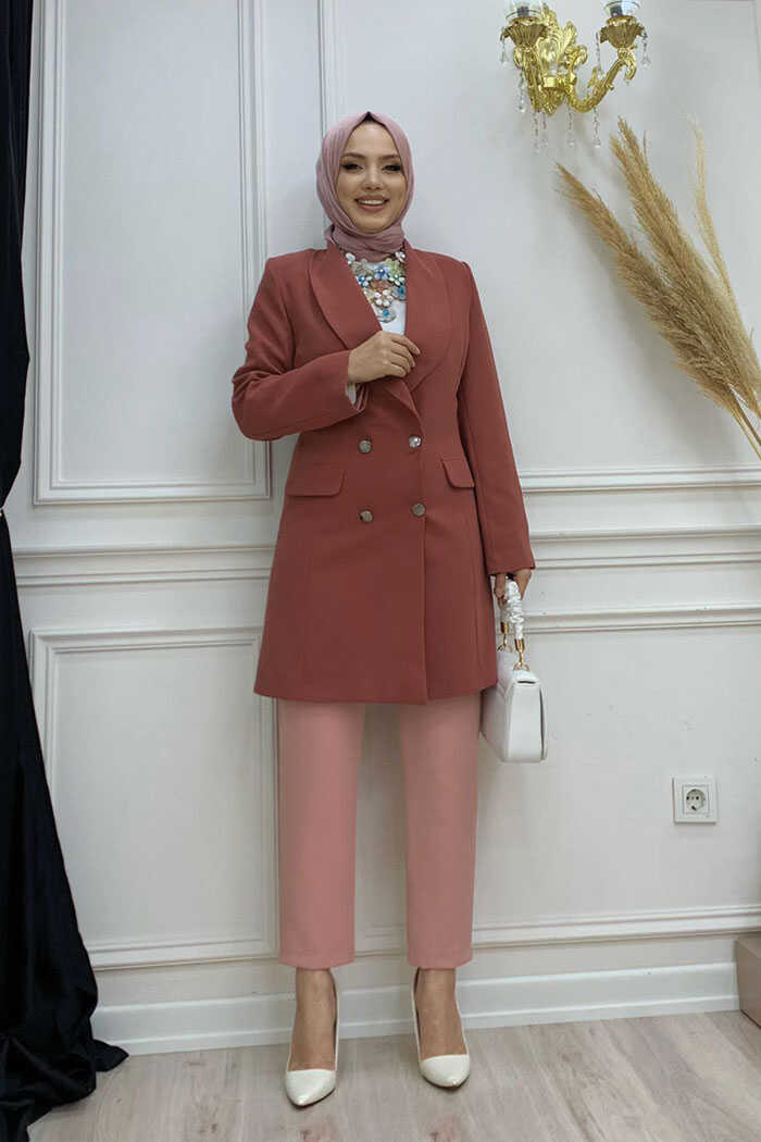 Cep Görünümlü Ön Düğme Detay Astarlı Ceket 7660 Gül Kurusu