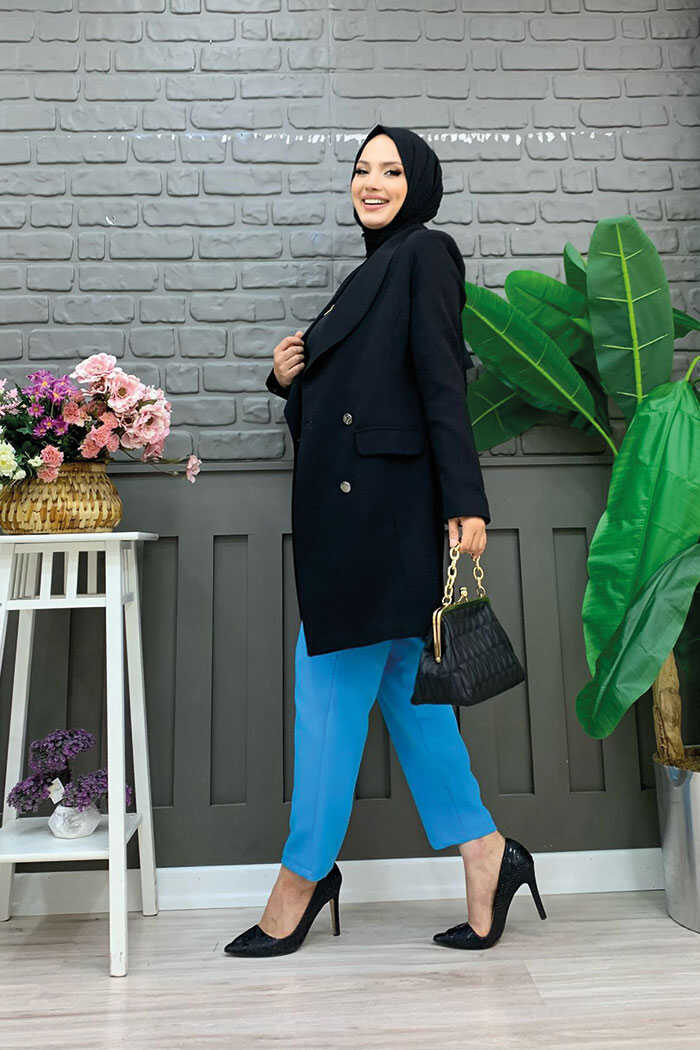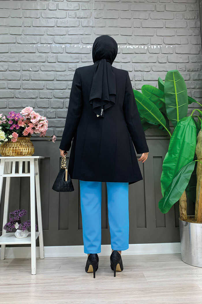 Cep Görünümlü Ön Düğme Detay Astarlı Ceket 7660 Siyah