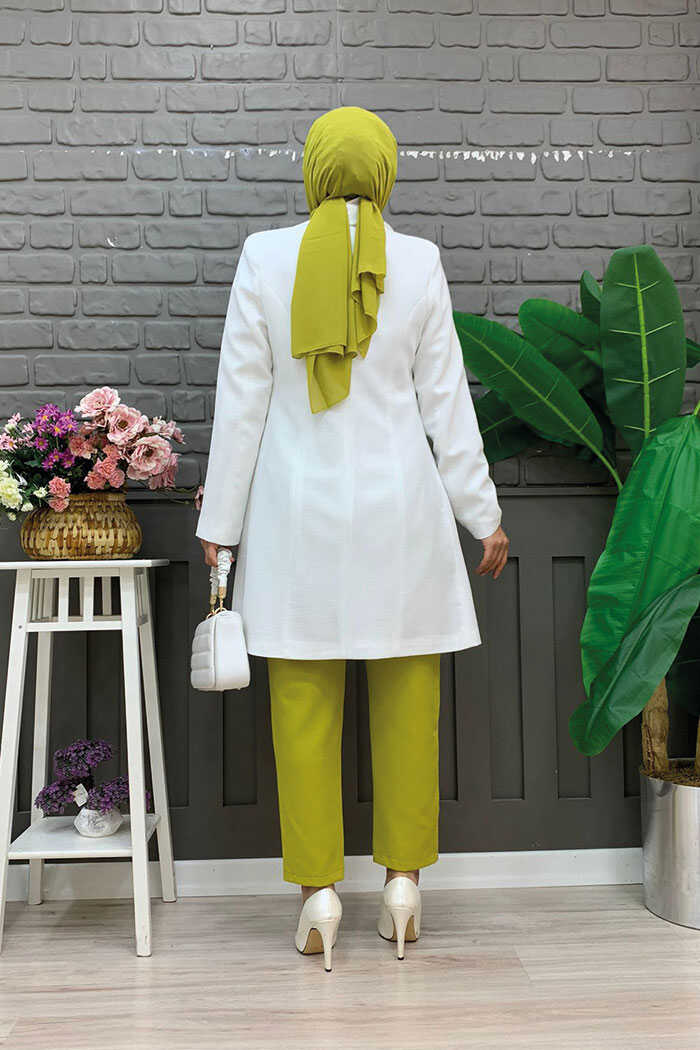 POCKET DETAIL BLAZER JACKET WITH BUTTONS Flat Model There are pocket details on the sides. Button Front Crepe Fabric 38/48 Size Range The size on our mannequins is 38. Average 165-170 cm in height, 55-60 kg.