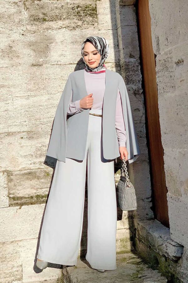 CLOAK DETAIL LINED JACKET There are pocket details on the side of the jacket. Sleeves are Cloak Detail Buttonless Straight Short Model Crepe Fabric. 38/48 Size Range. The size on our mannequins is 38. Average 165-170 cm in height, 55-60 kg.