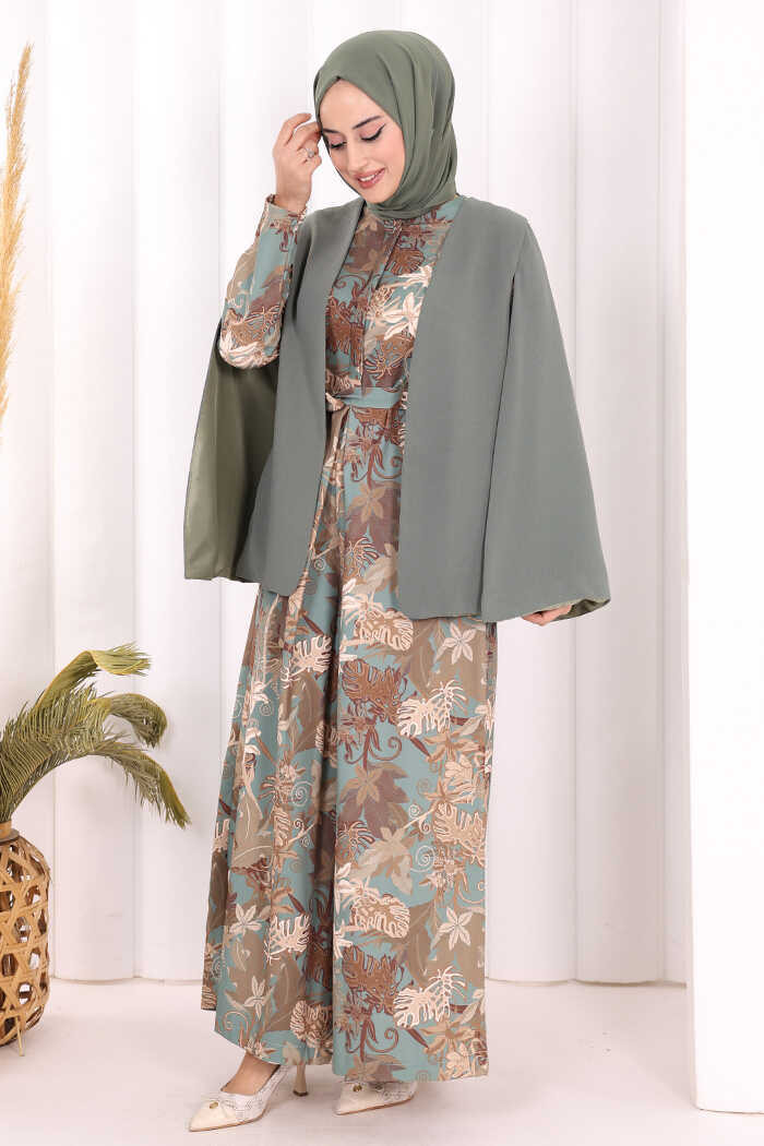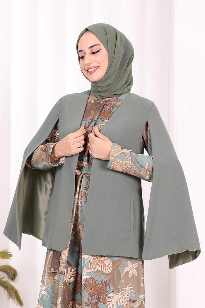Pelerin Kol Görünümlü Düz Astarlı Ceket 7666 Mint
