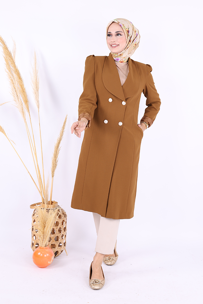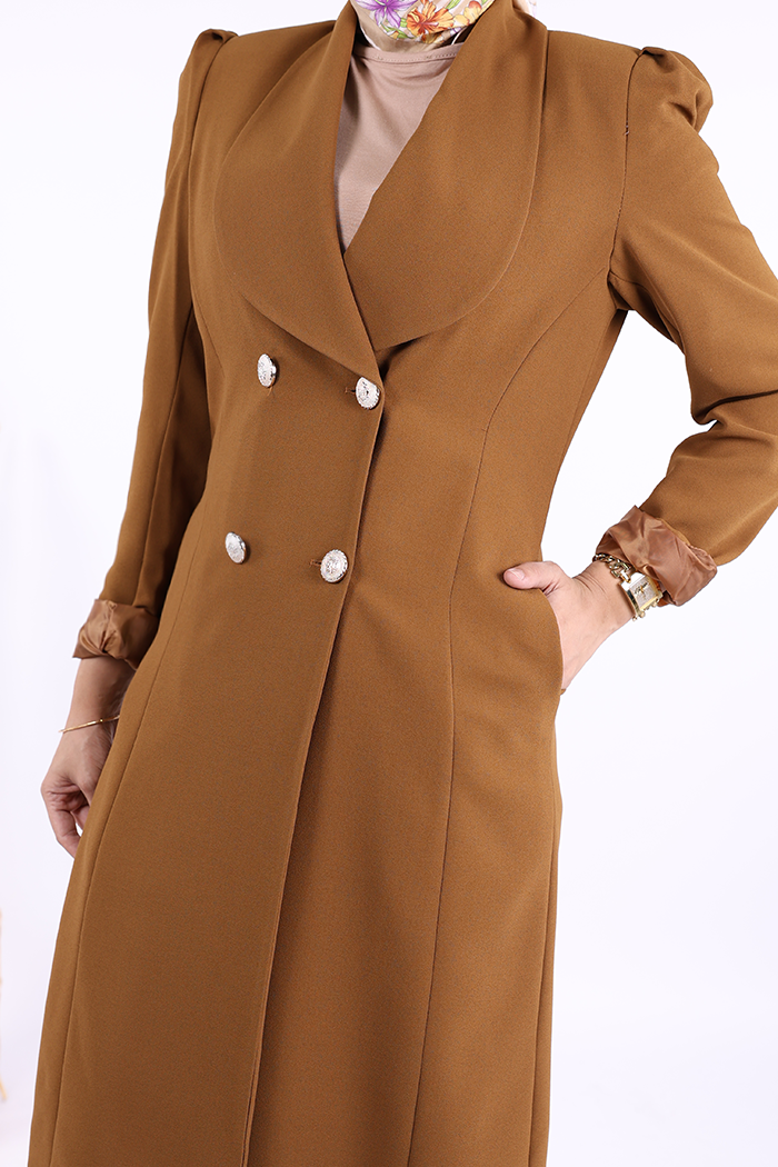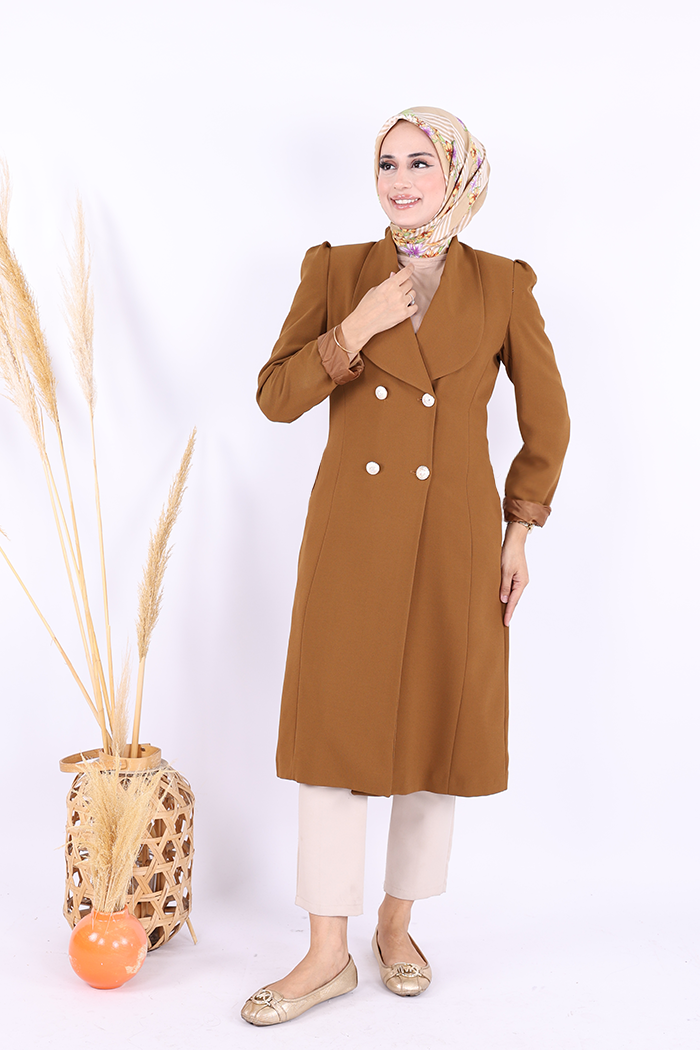 Yaka Detay Ön Düğmeli Yarım Boy Ceket 7693 Taba