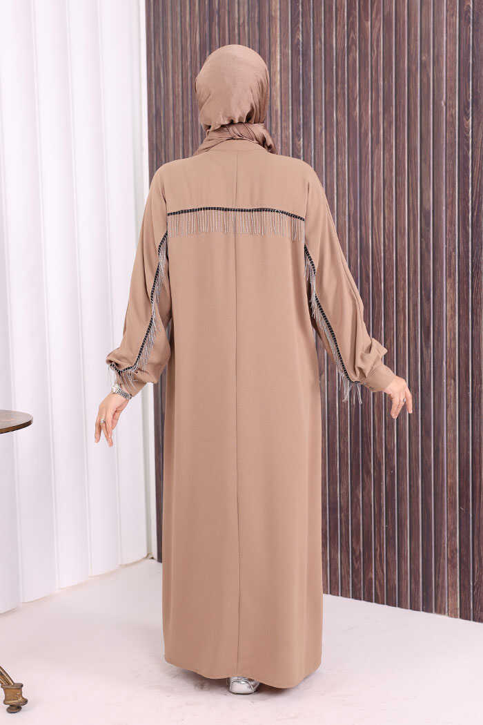 Geknöpfter Fledermauskragen mit Kettenquastendetail auf der Rückseite 7822 Nerz