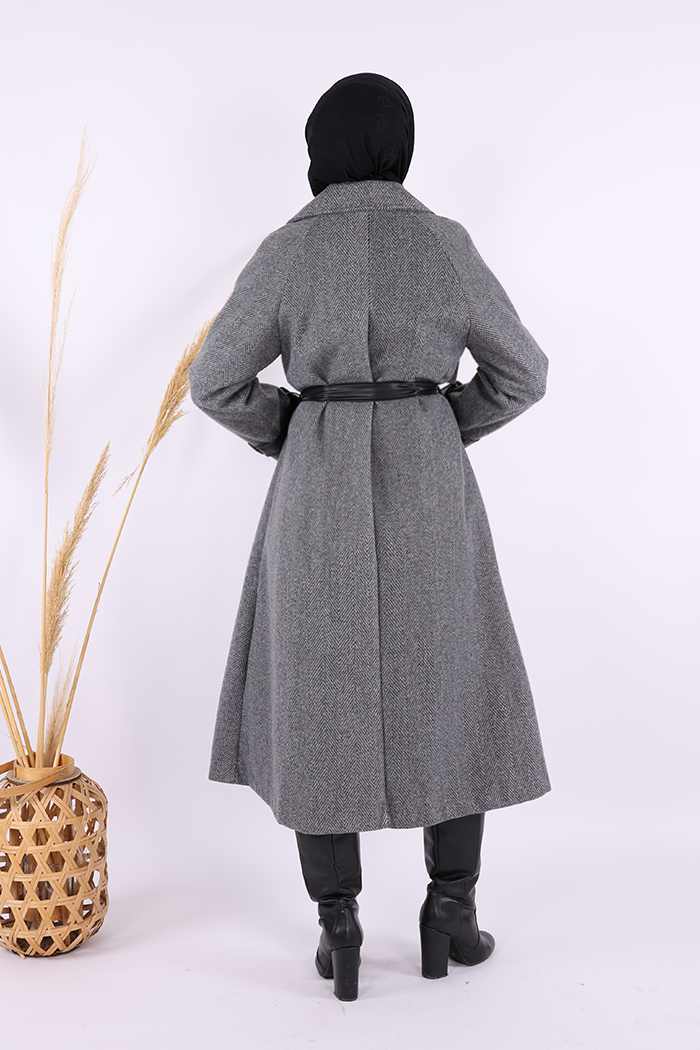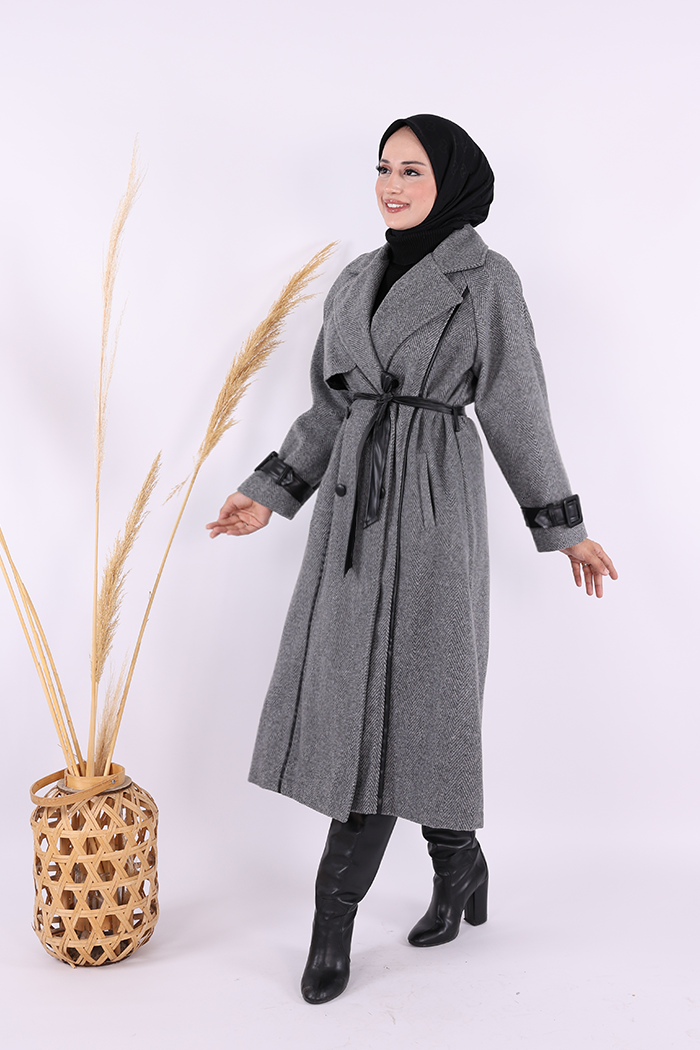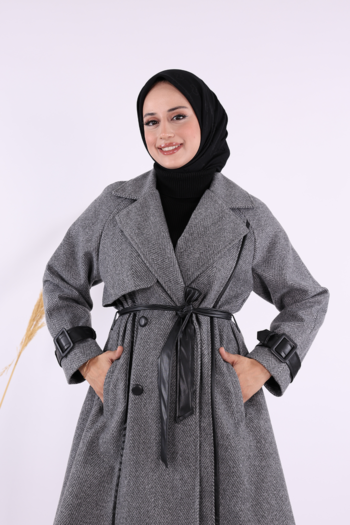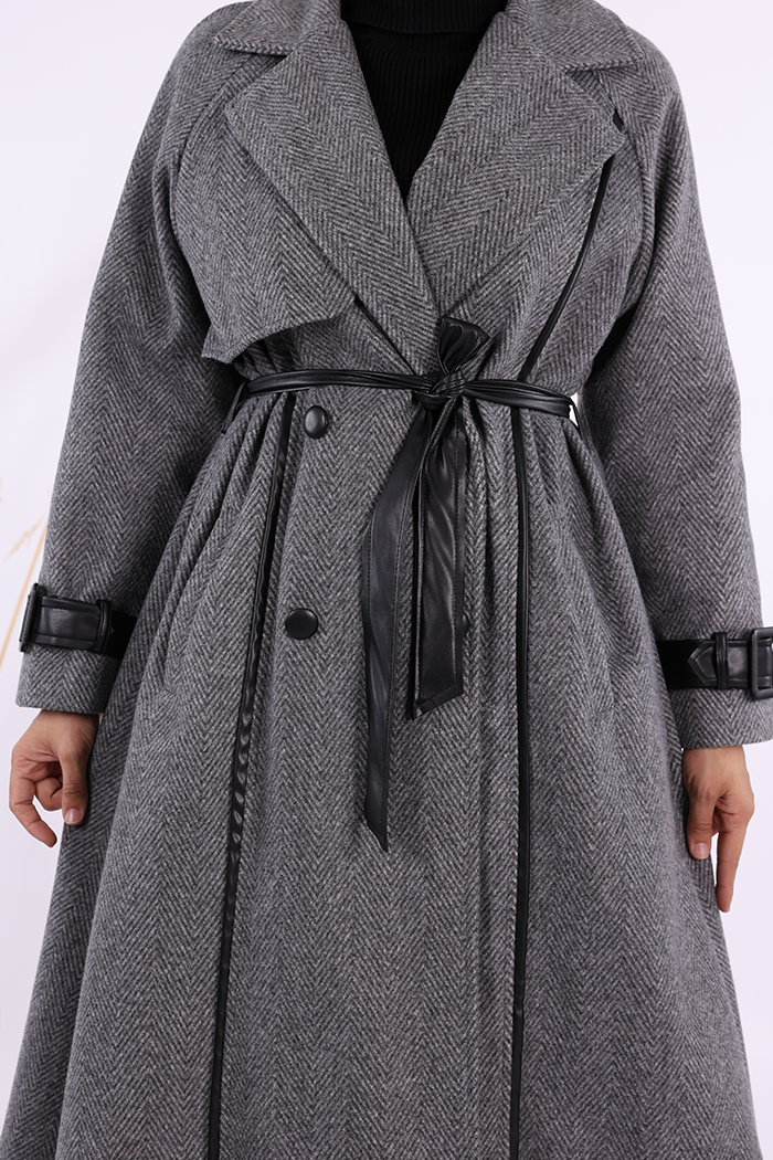 ASTARLI DERİ DETAY BEL KUŞAKLI KAŞE KABAN:
