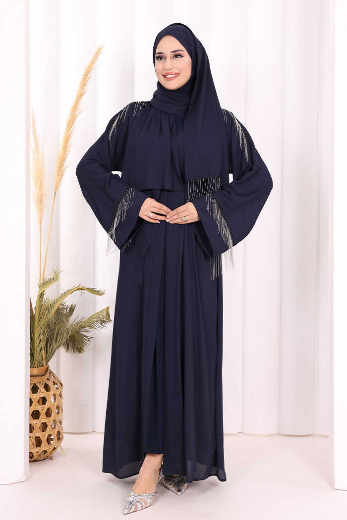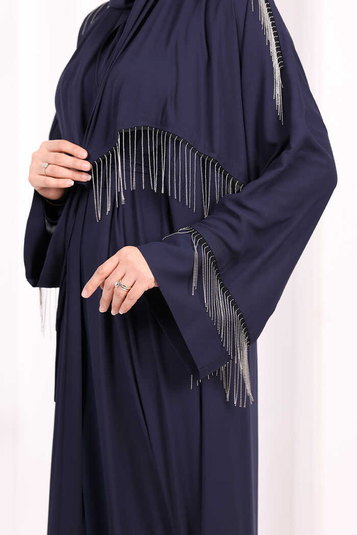 Zincir Püskül Detay Abaya ŞAL HEDİYE 7887 Lacivert