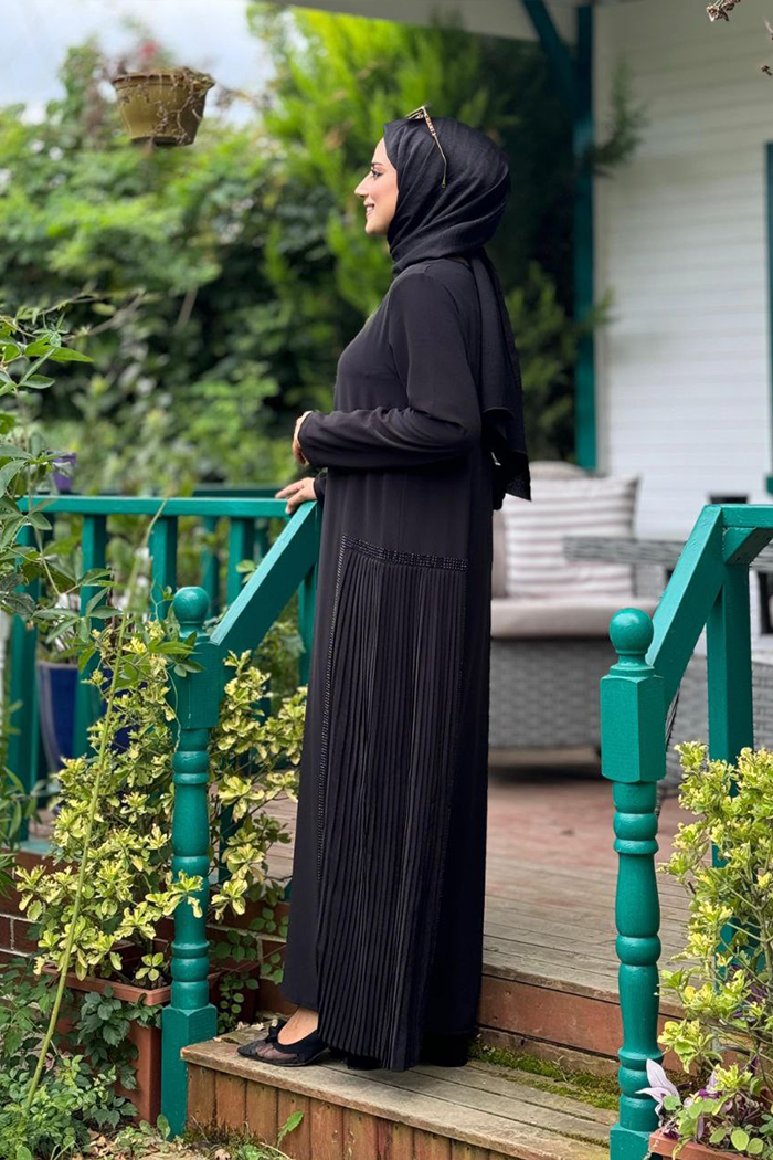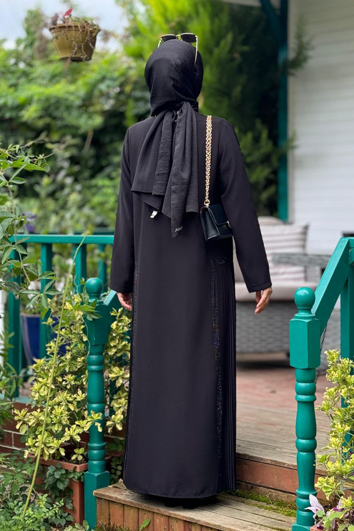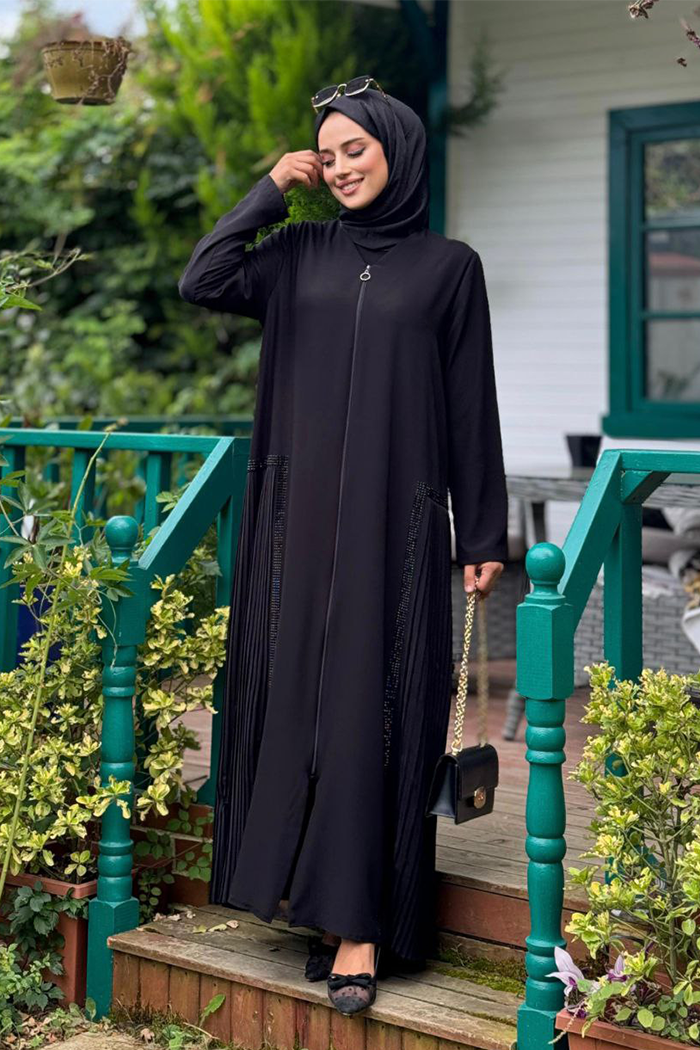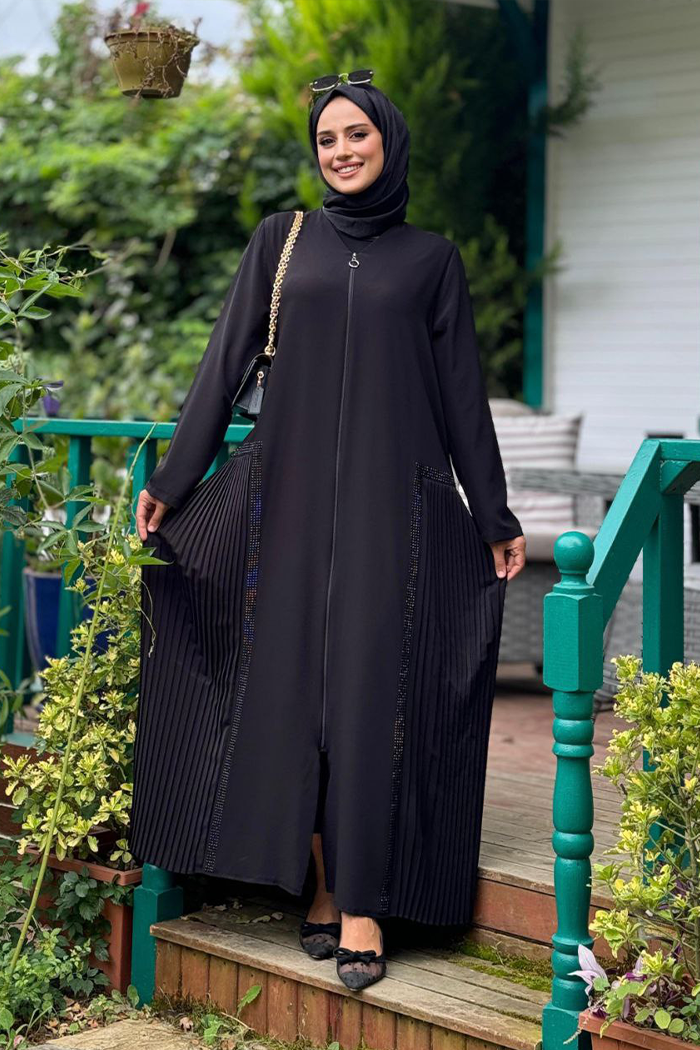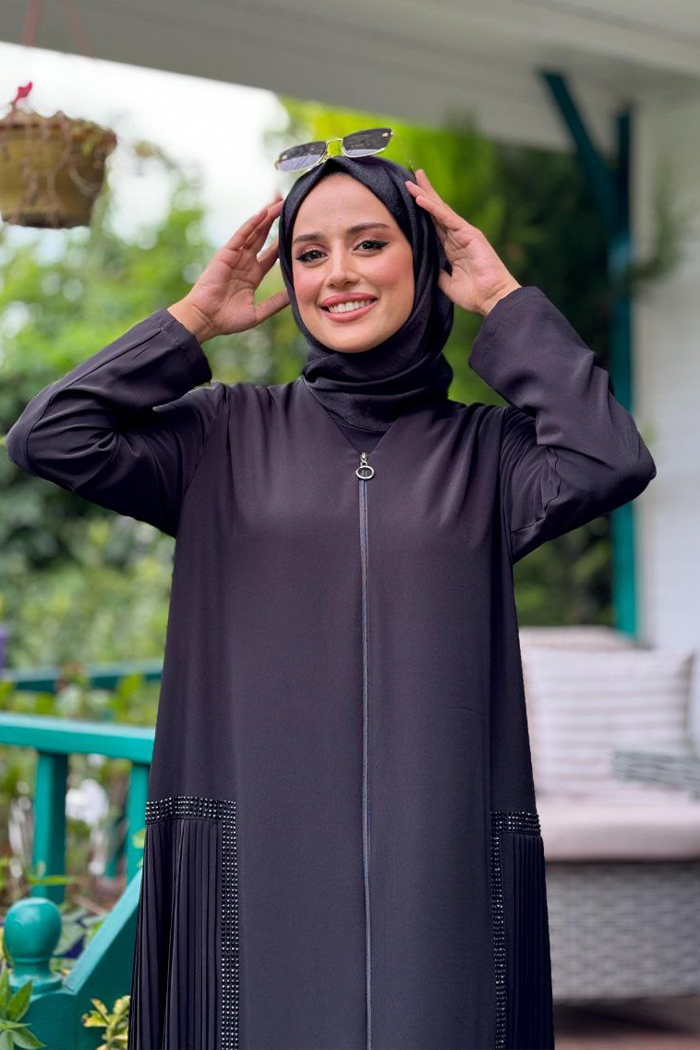 PİLİSELİ TAŞ DETAY FERMUARLI FERACE