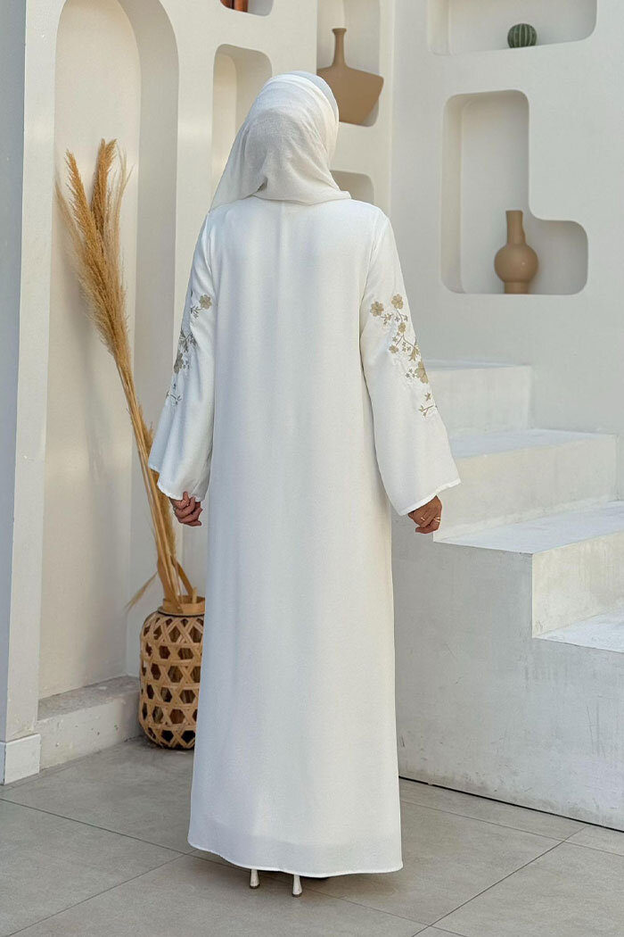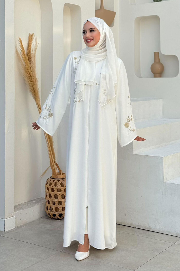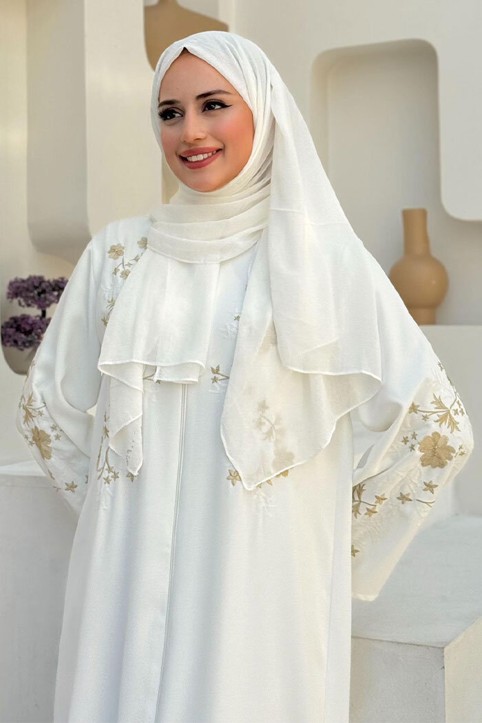 Nakış İşleme Detaylı Ferace 7895 Ekru