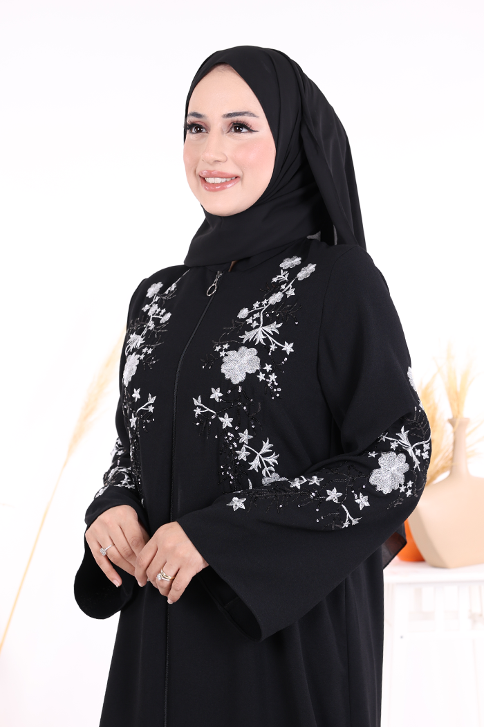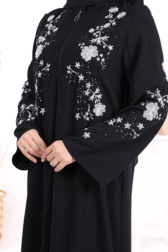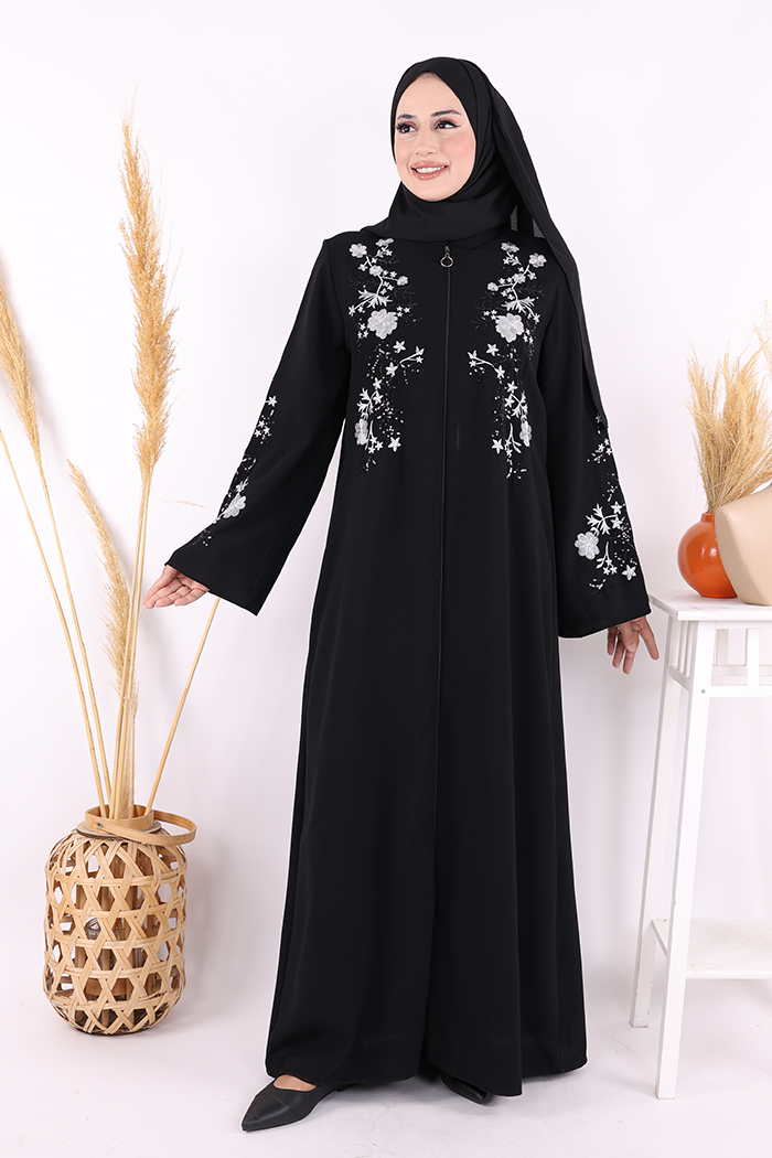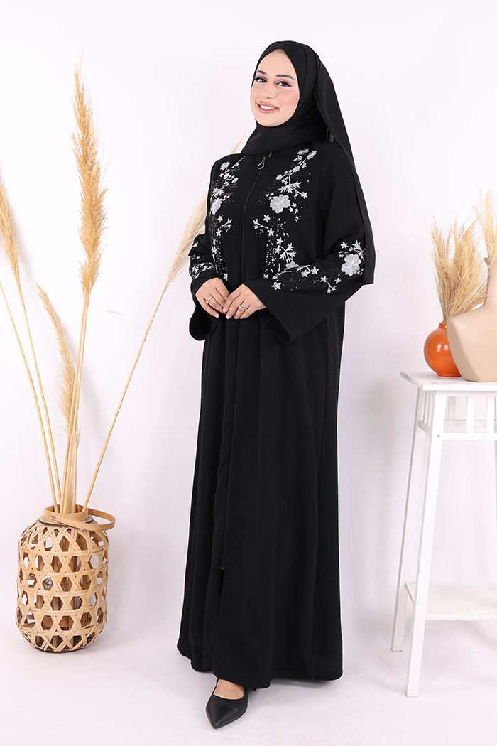 Nakış İşleme Detaylı Ferace 7895 Siyah
