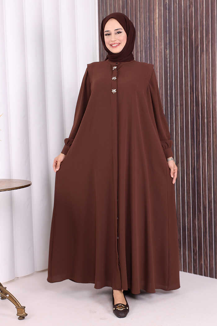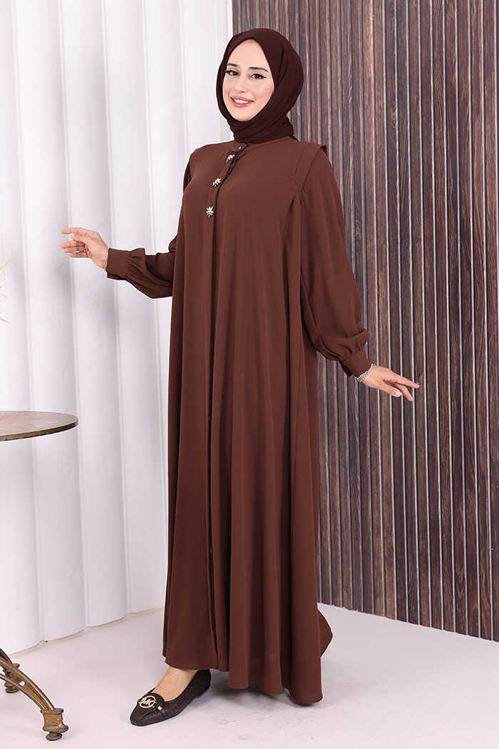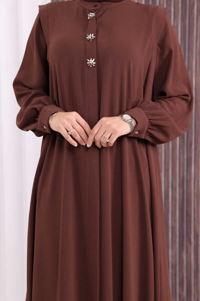 DÜĞMELİ TAŞ İŞLEME DETAYLI ELBİSE: