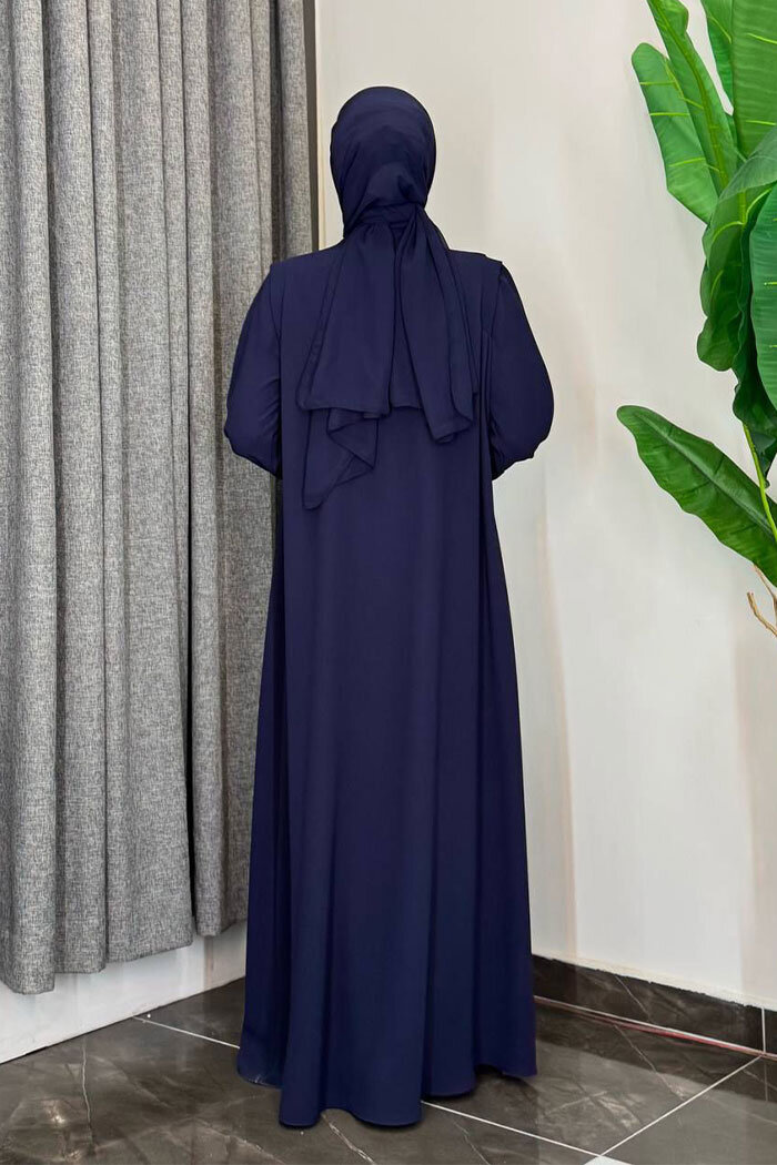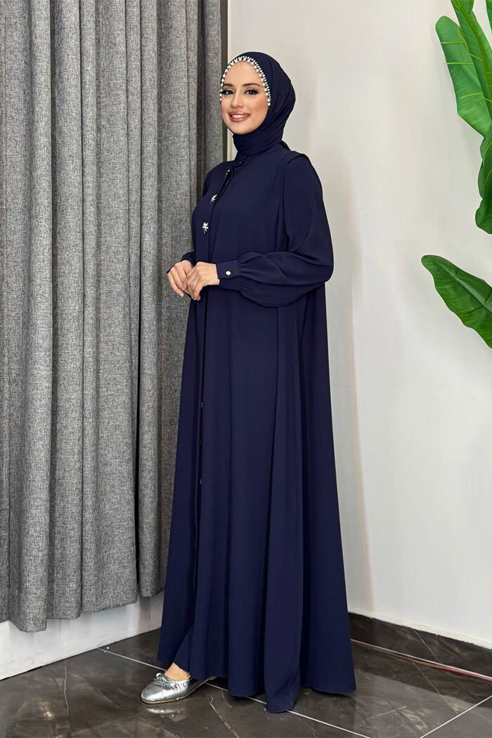 Boydan Düğmeli Taş İşleme Detaylı Ferace 7903 Lacivert