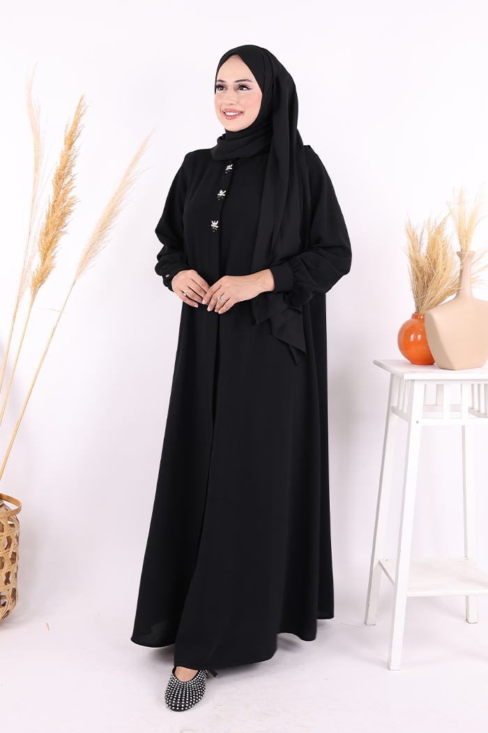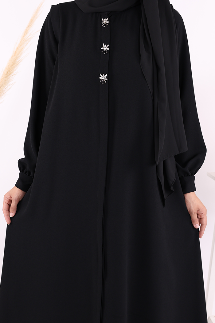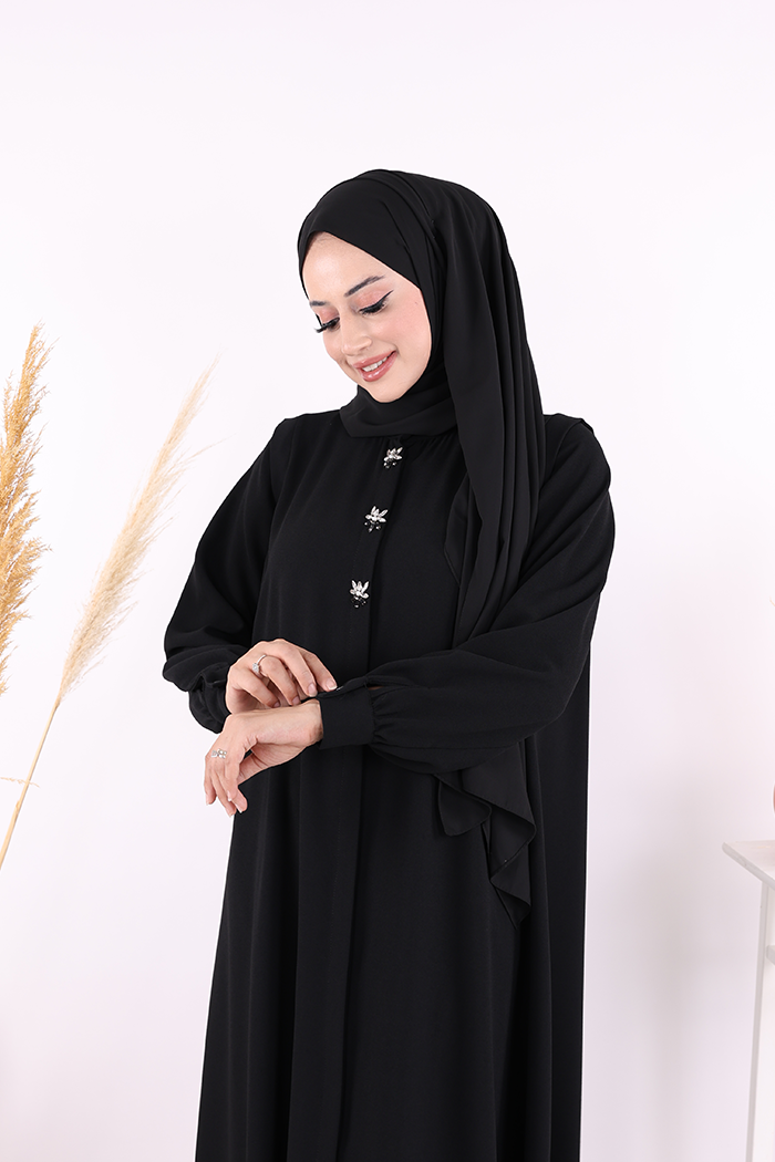 DÜĞMELİ TAŞ İŞLEME DETAYLI ELBİSE: