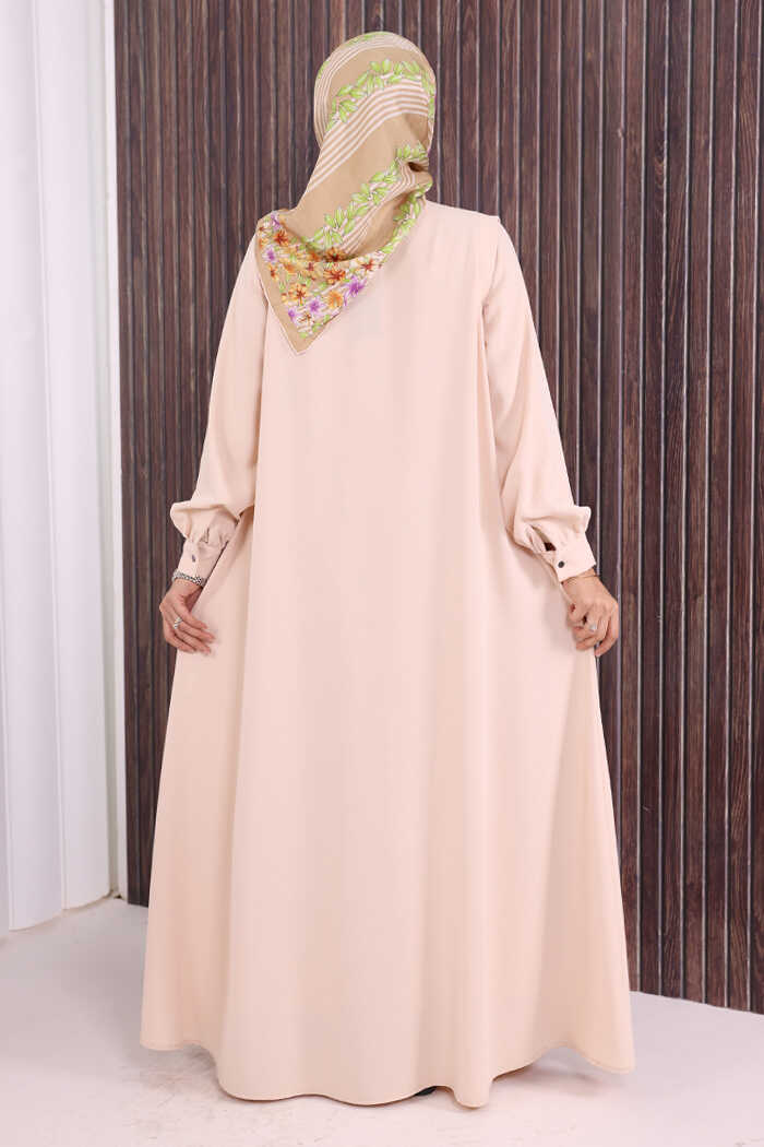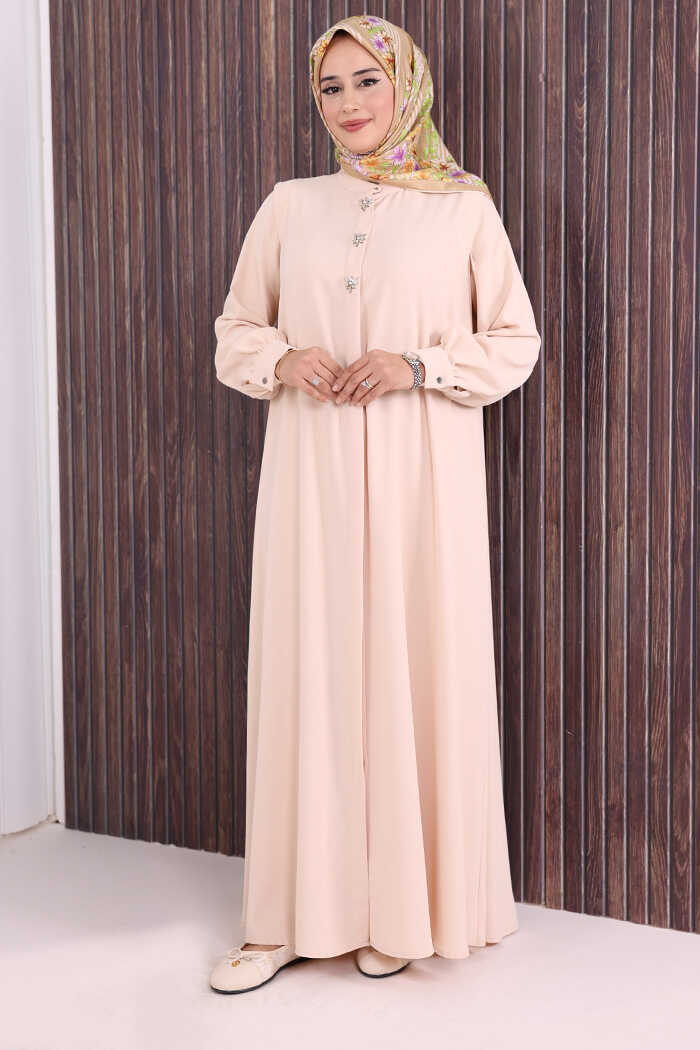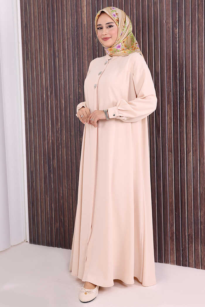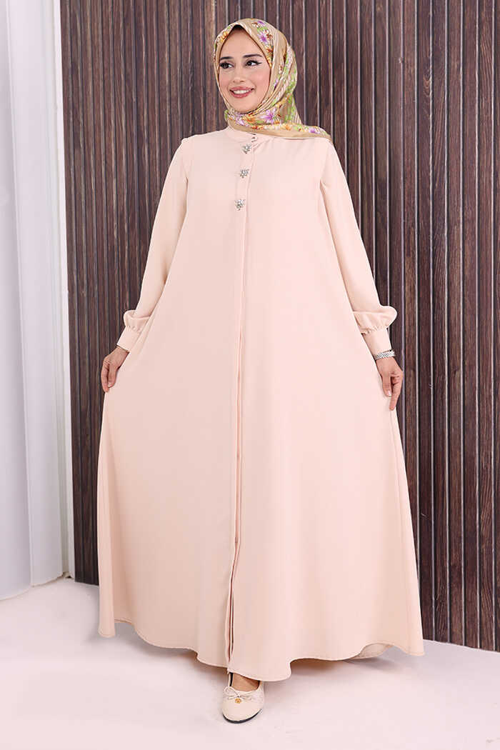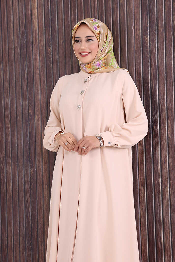 Boydan Düğmeli Taş İşleme Detaylı Ferace 7903 Taş