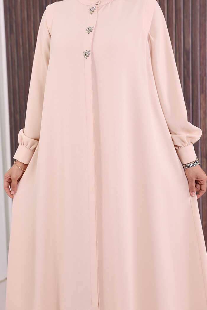 DÜĞMELİ TAŞ İŞLEME DETAYLI ELBİSE: