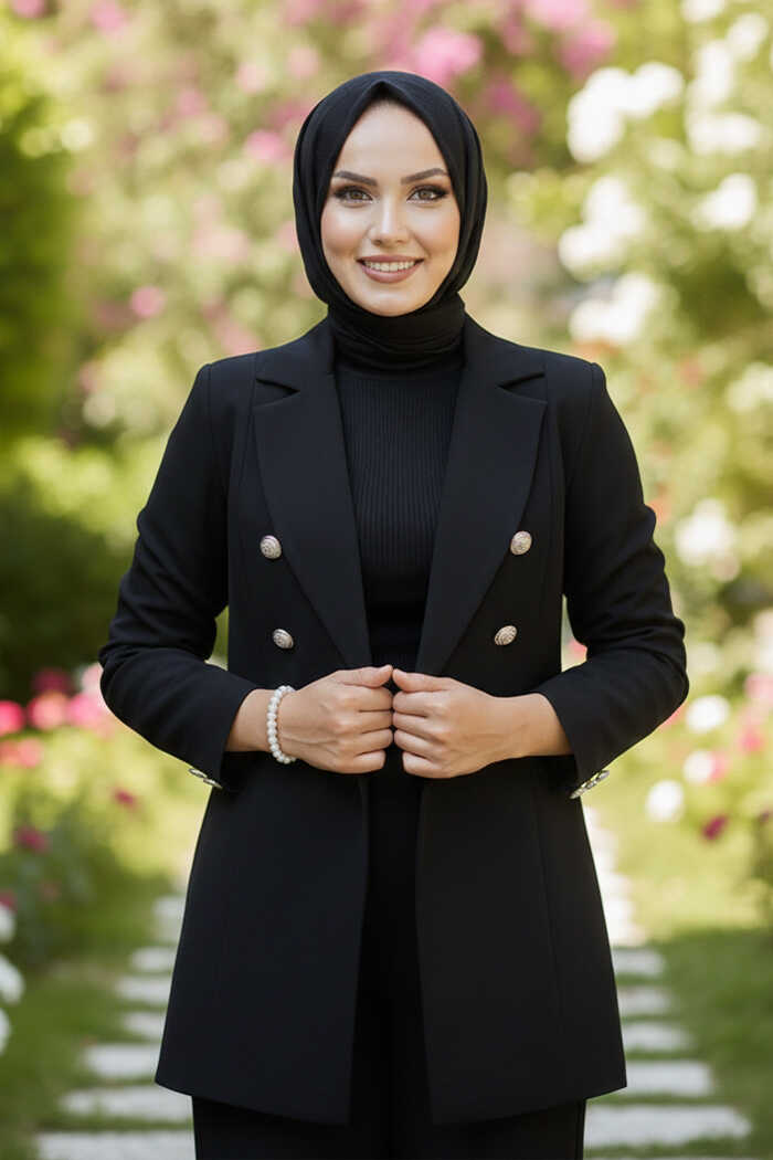 Düğme Detay Blazer Ceket Bol Pantolon Takım 8302 Siyah