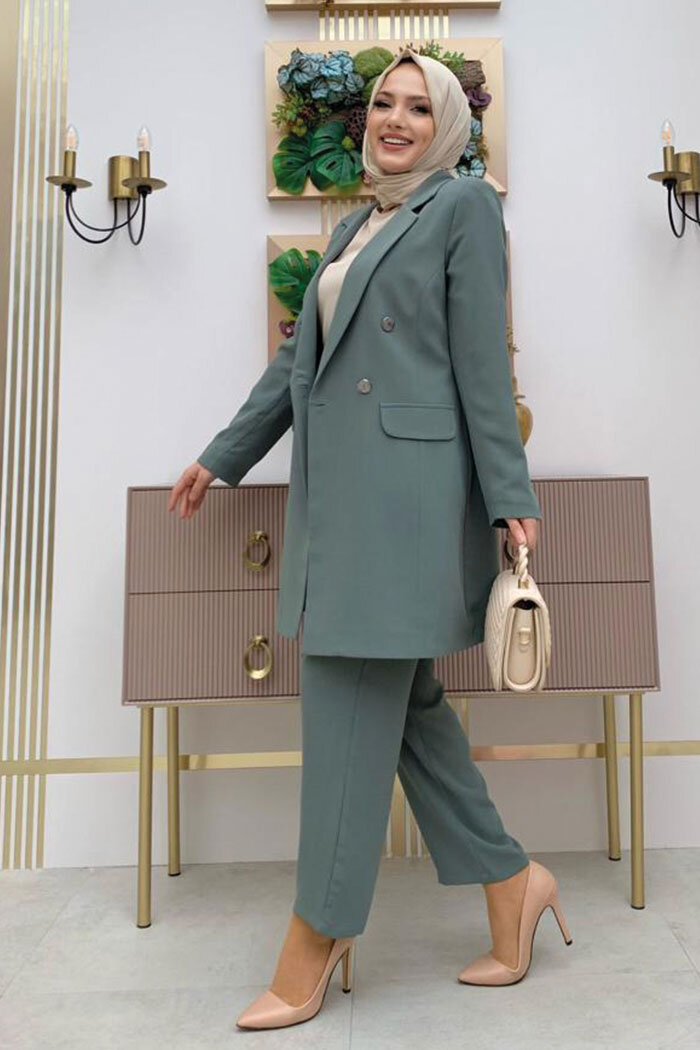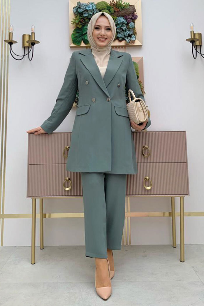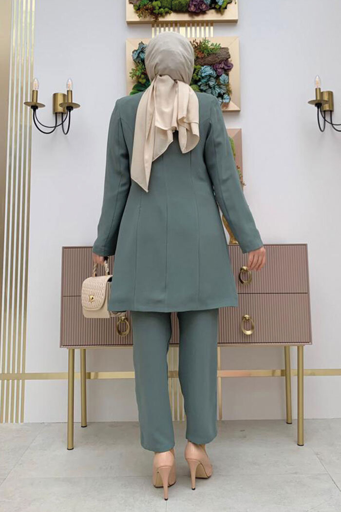Düğme Detaylı Kısa Ceket Pantolon Takım 8352 Mint