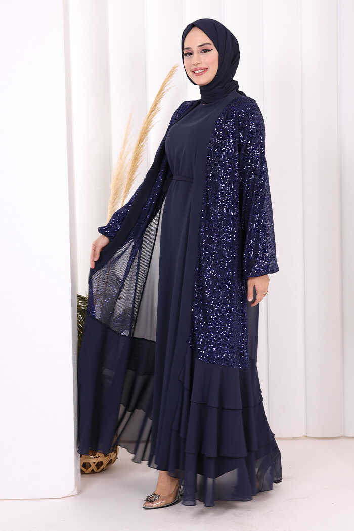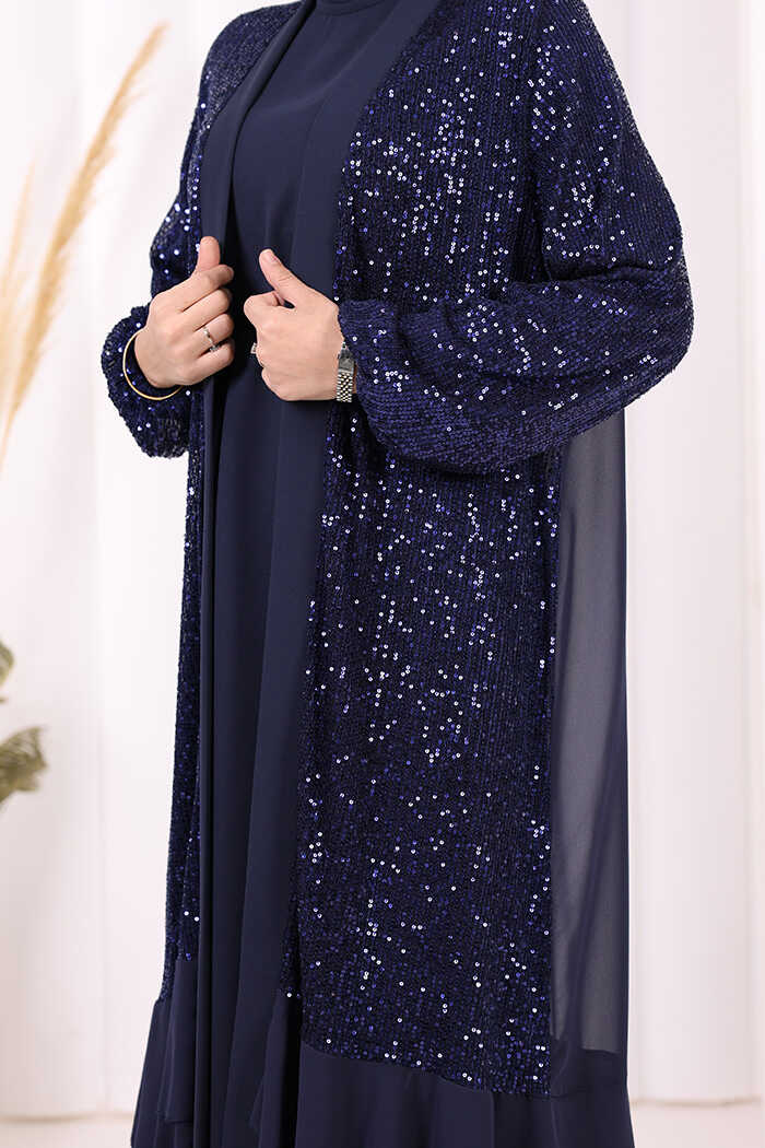 Pulpayet İşlemeli Abaya ve Elbise Takım 8483 Lacivert