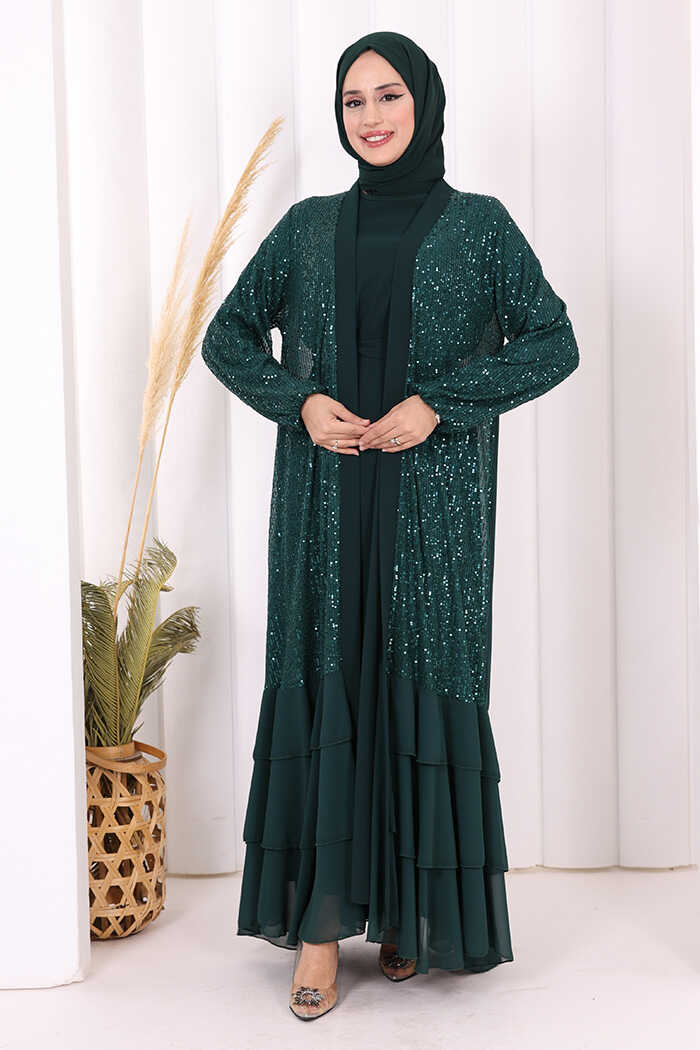PULPAYET İŞLEMELİ ABAYA VE ELBİSE TAKIM