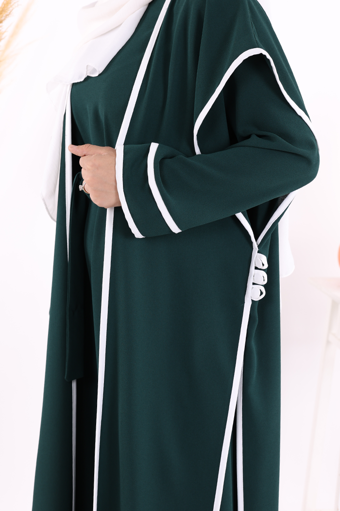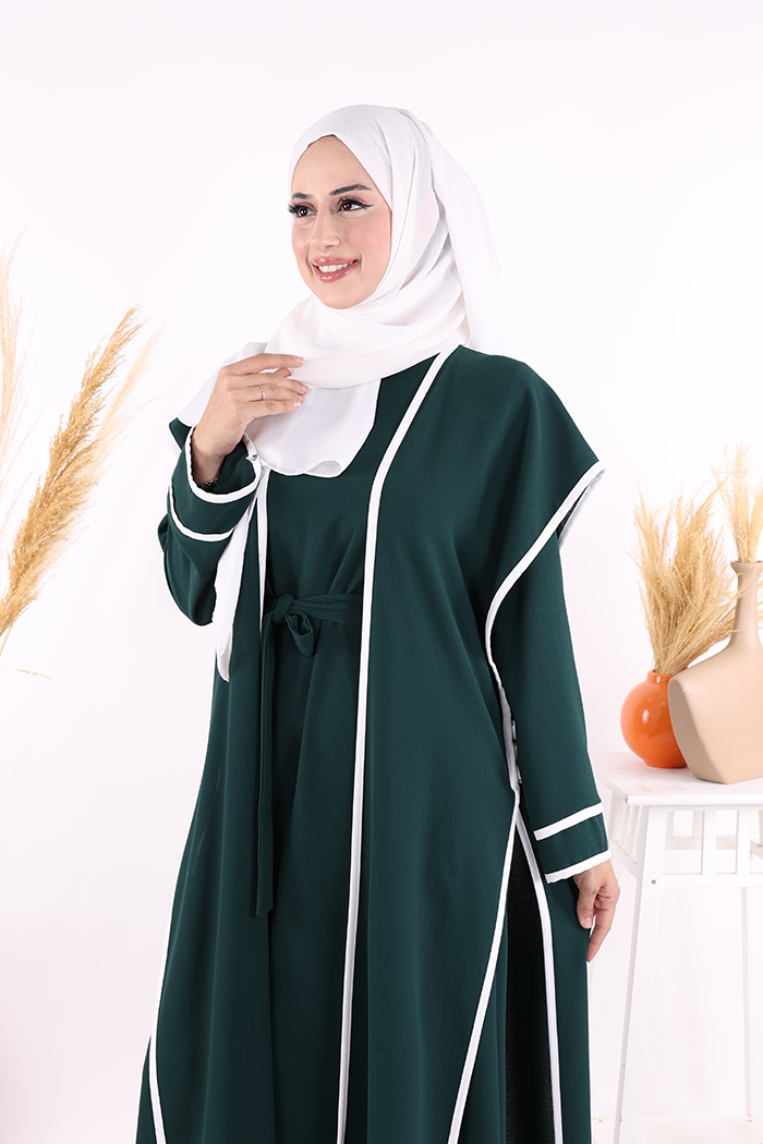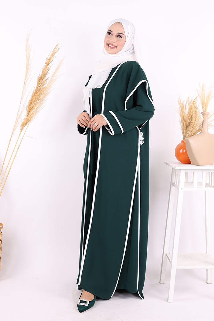 Düğme Detaylı Yırtmaçlı Yelek ve Elbise İkili Takım 8485 Zümrüt