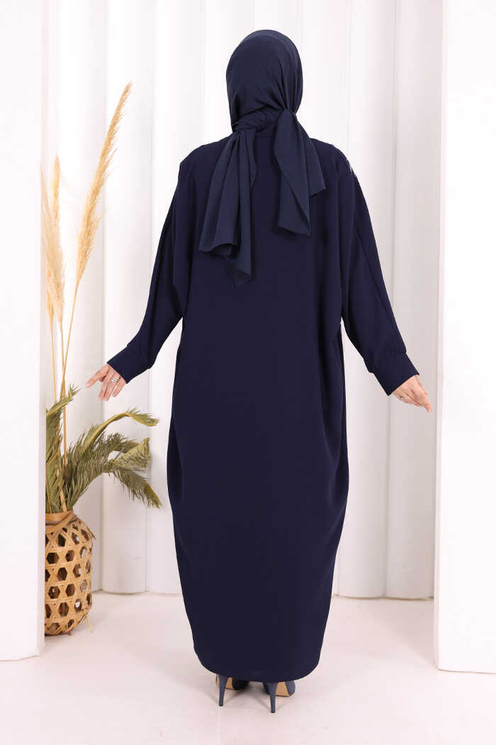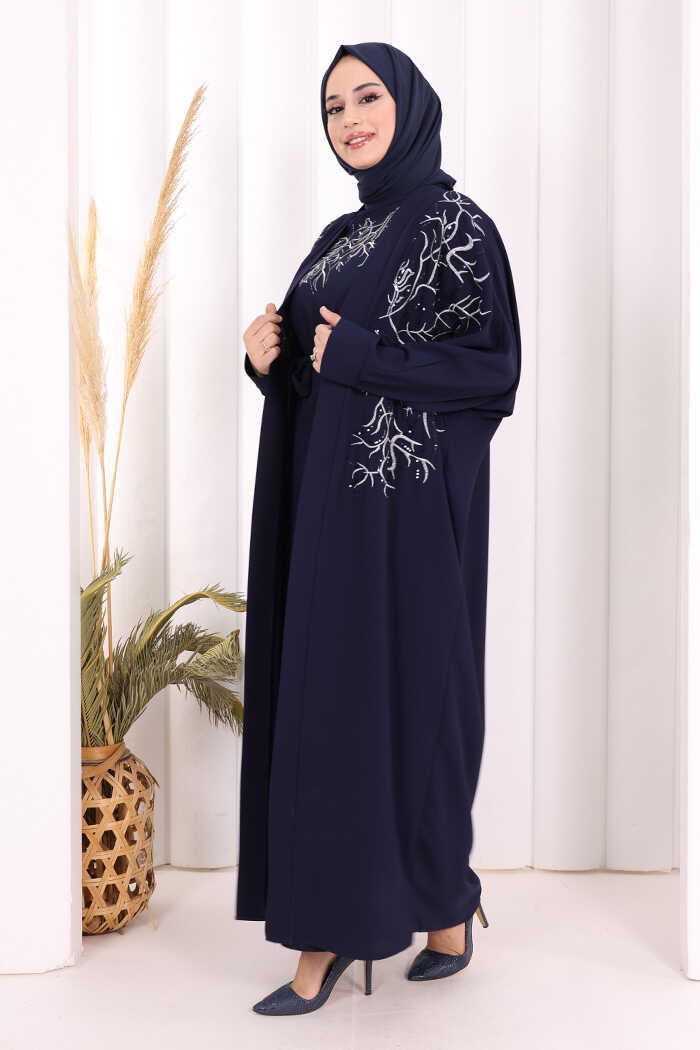 İşleme Detaylı Abaya ve Elbise Takım 8486 Lacivert