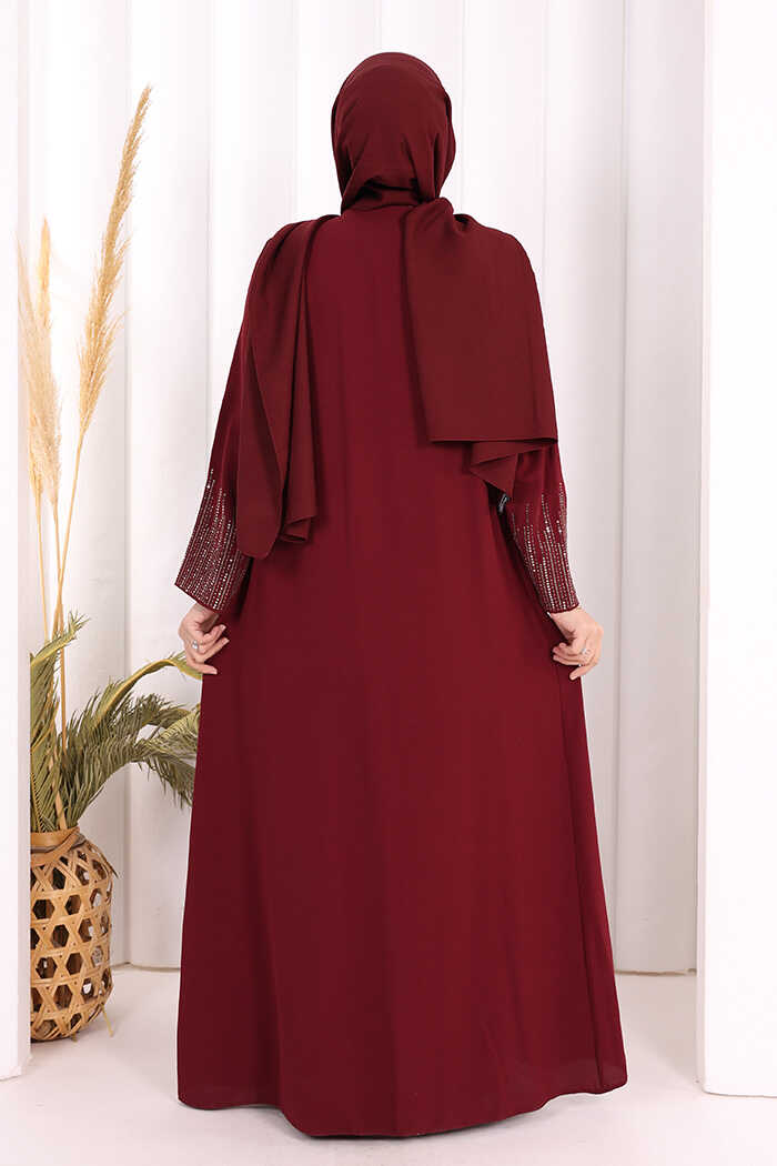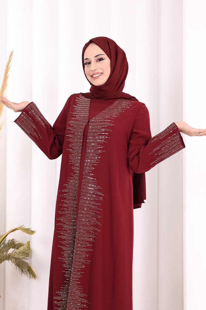 Pul İşlemeli Yelekli Elbise Takım 8498 Bordo