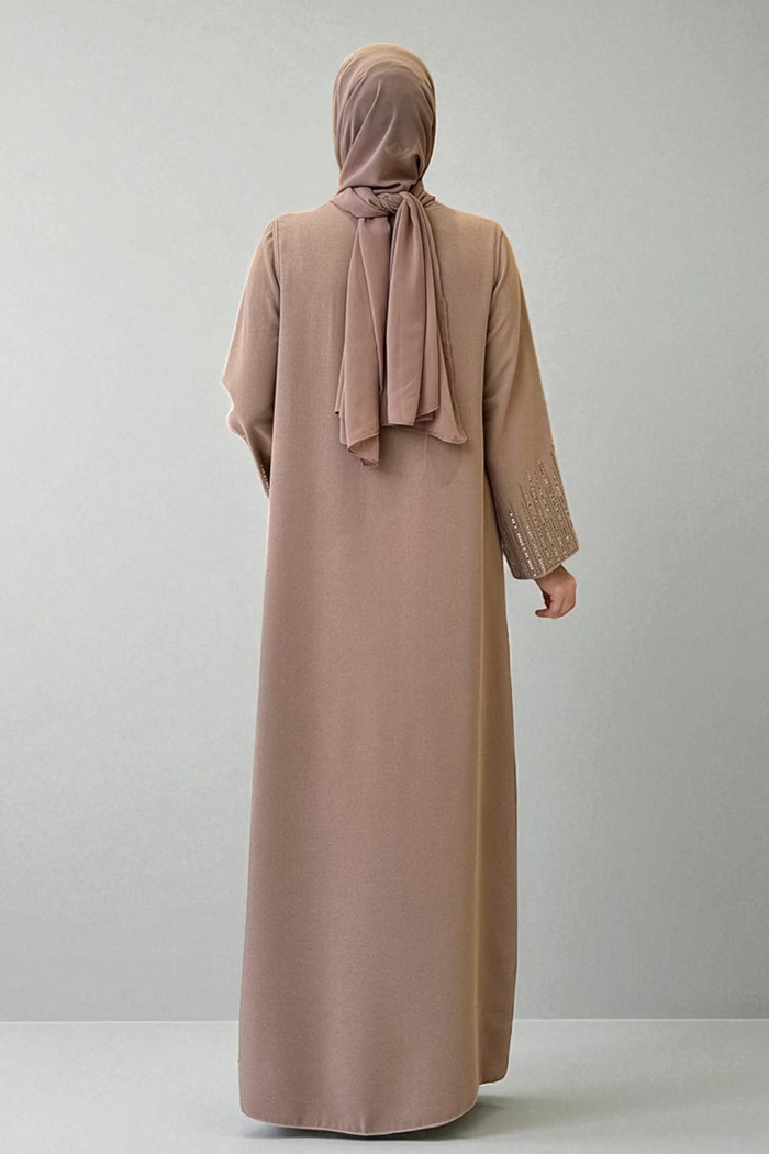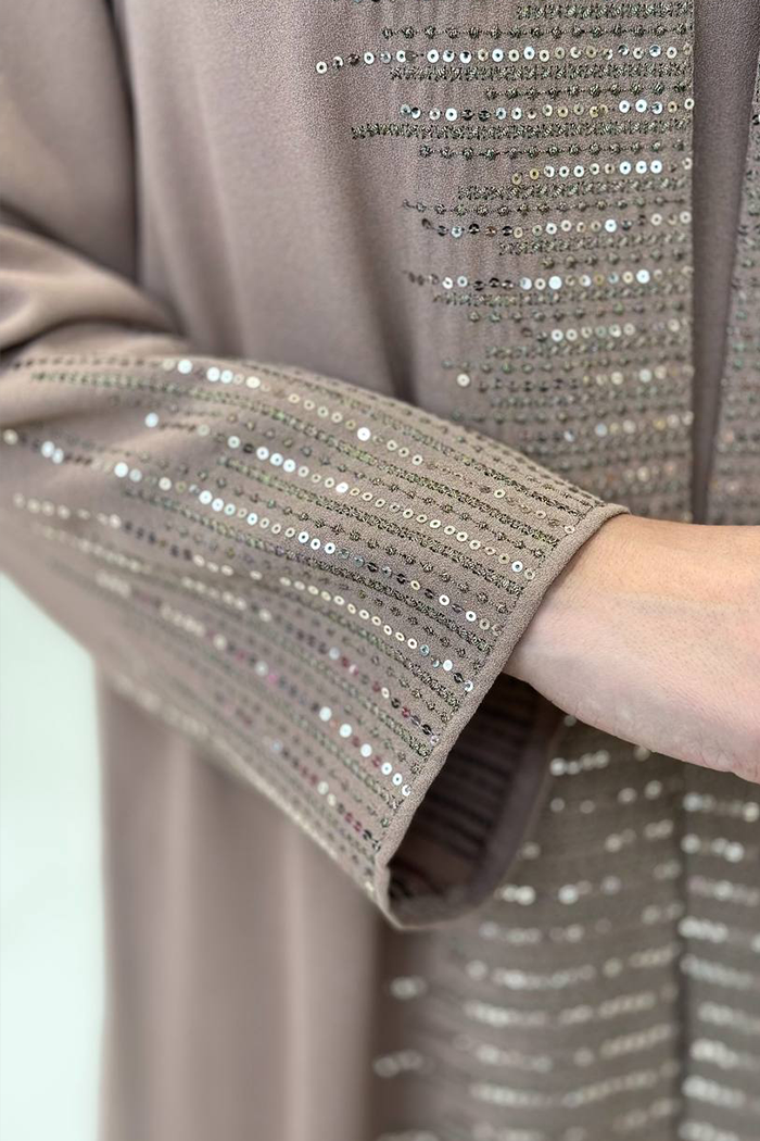 Pul İşlemeli Yelekli Elbise Takım 8498 Vizon