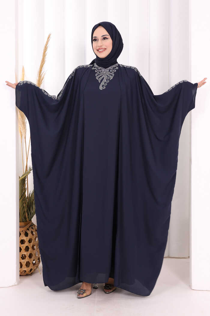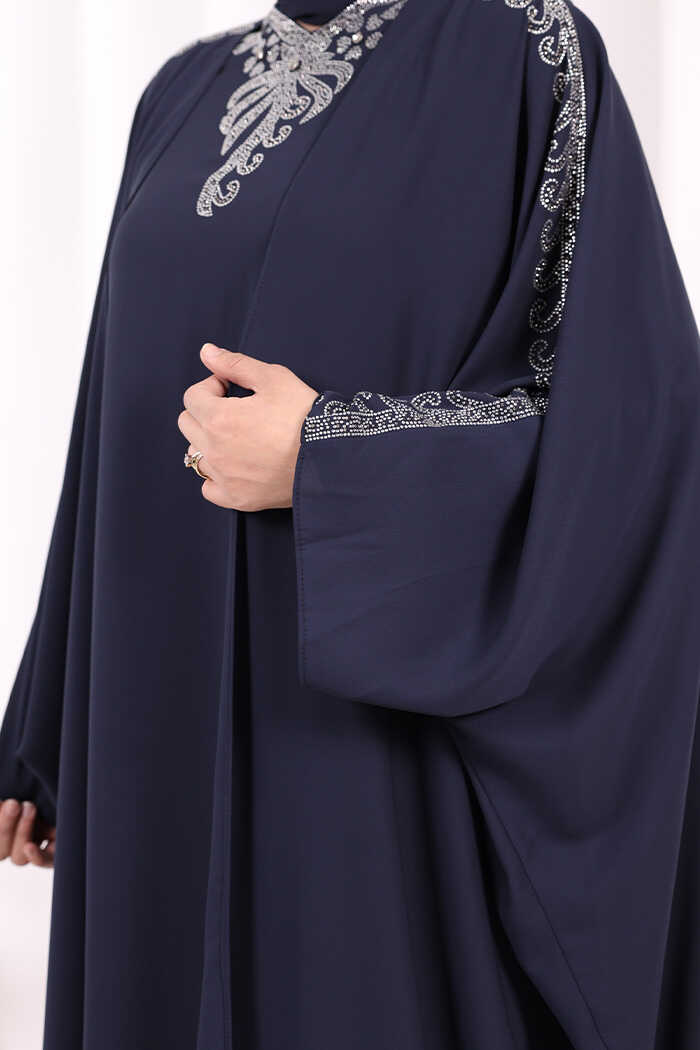 Taş İşlemeli Elbiseli Abaya Takım 8499 Lacivert