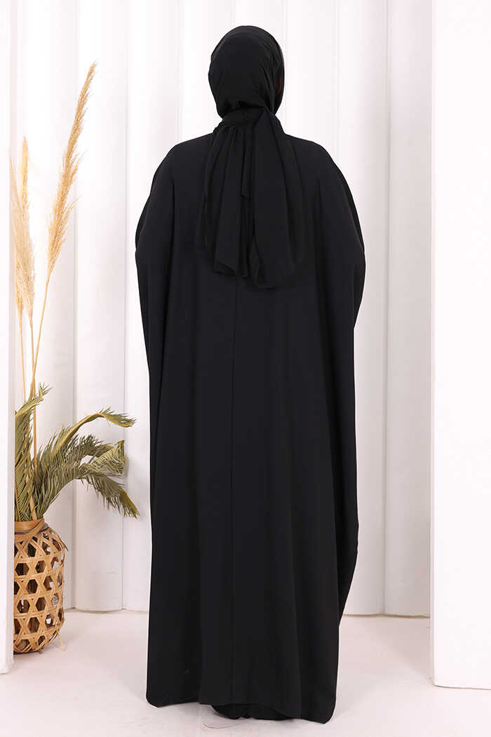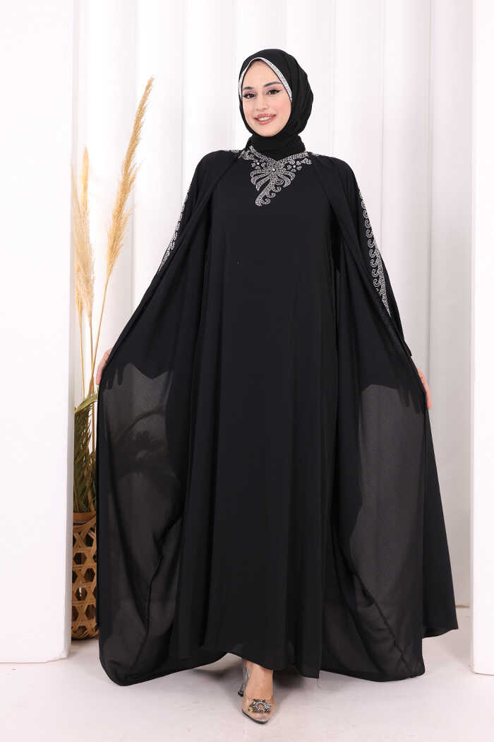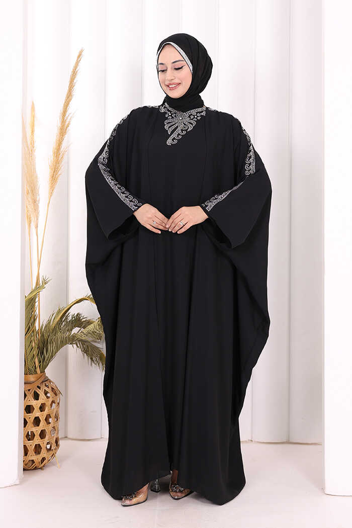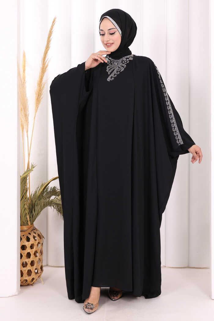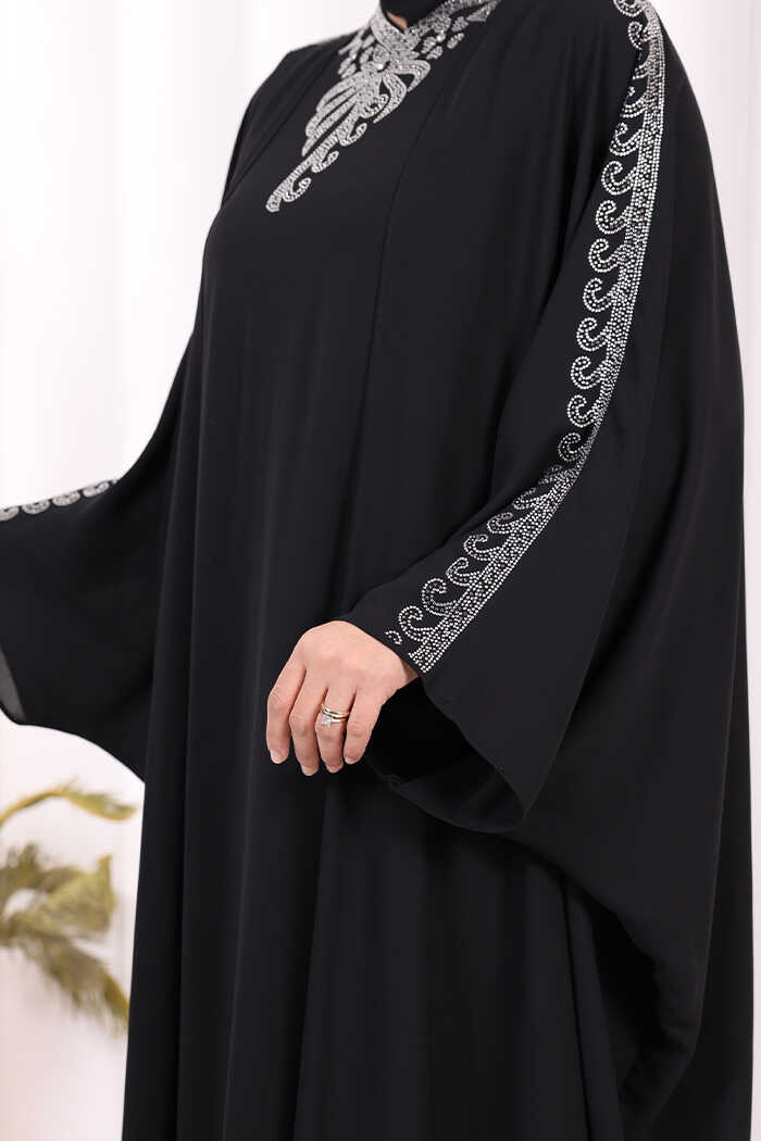 Taş İşlemeli Elbiseli Abaya Takım 8499 Siyah