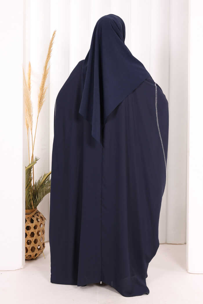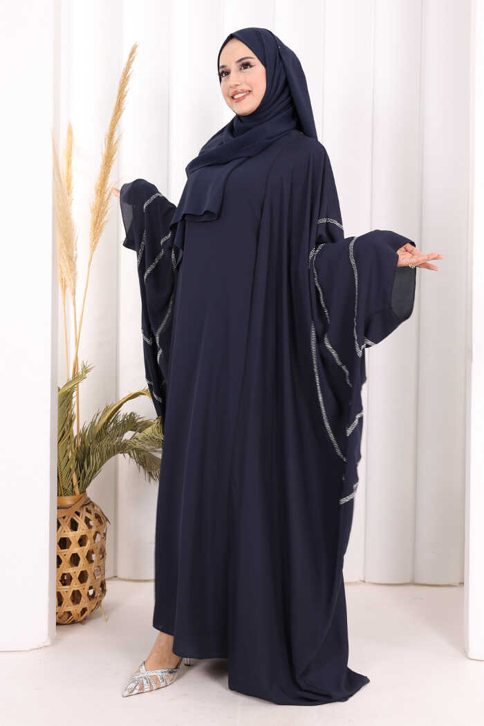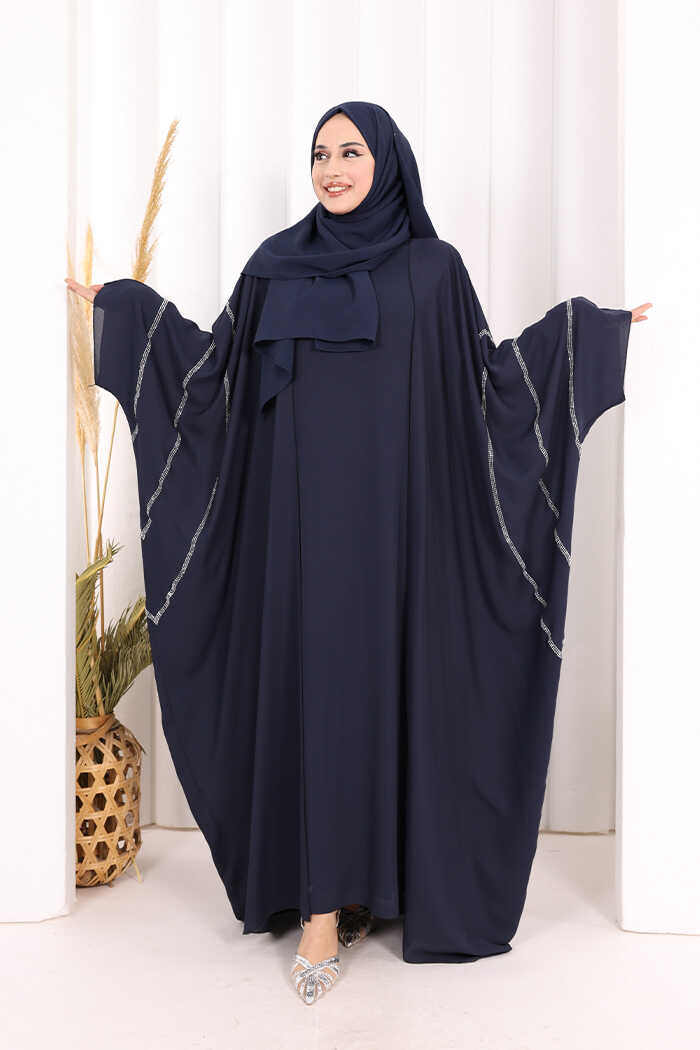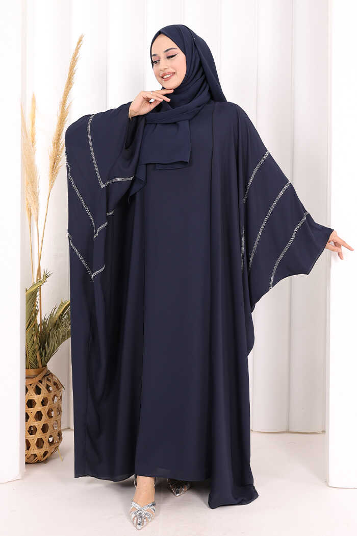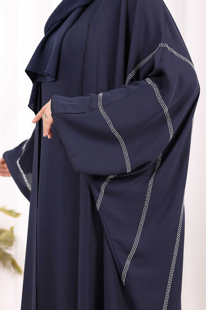 Taş İşleme Detaylı Abayalı Elbise Takım 8500 Lacivert