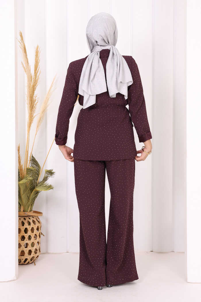 Taş Detaylı Ceket Pantolon İkili Takım 8599 Mürdüm