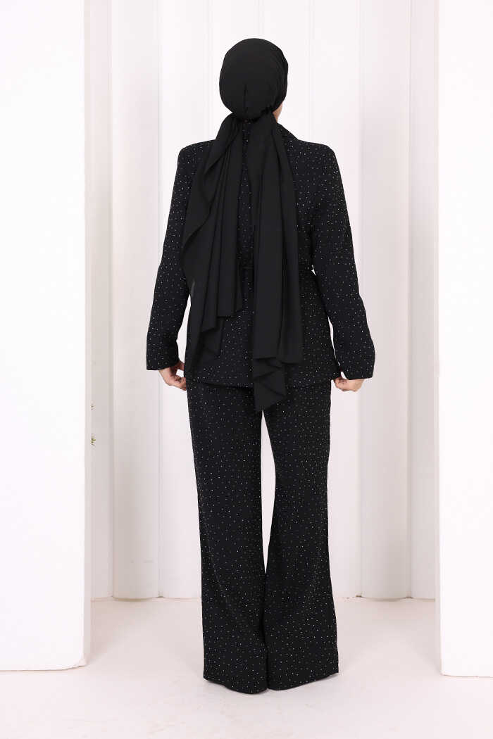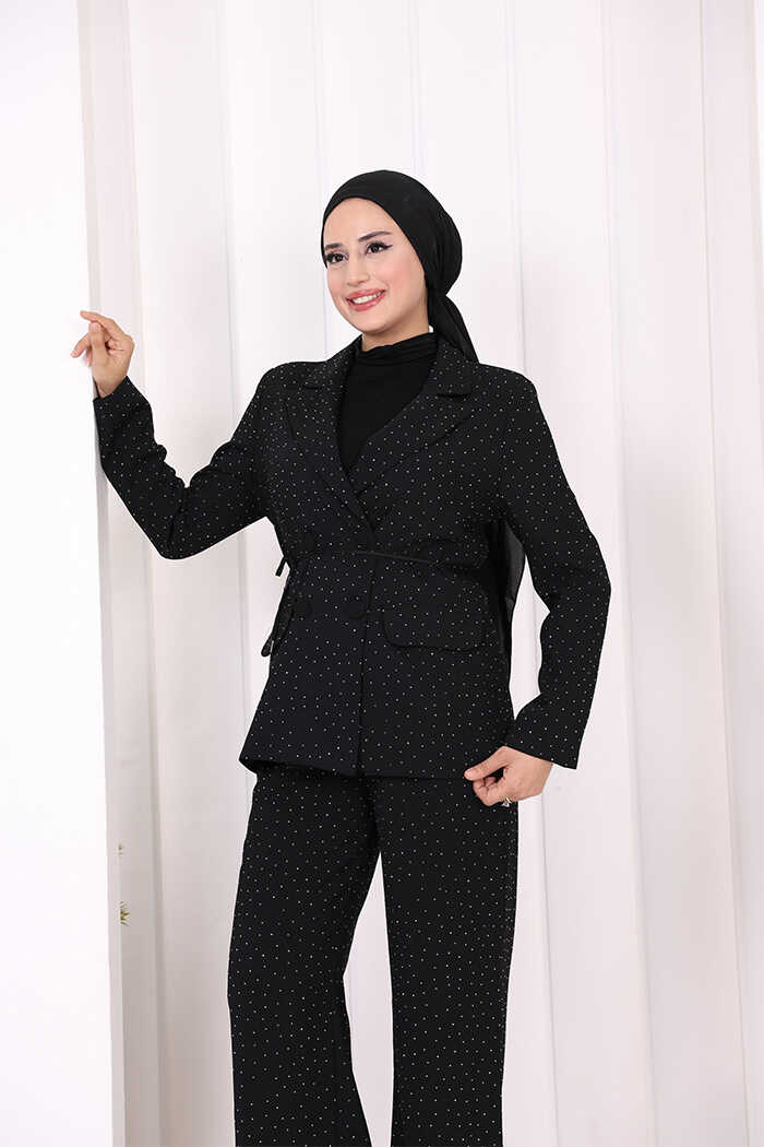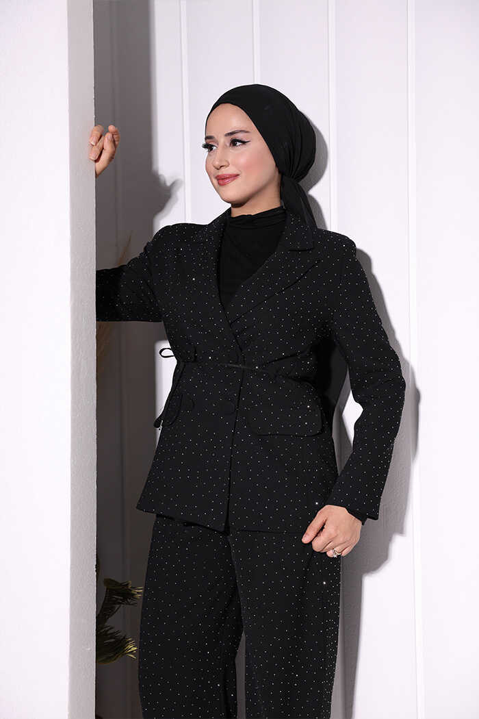 Taş Detaylı Ceket Pantolon İkili Takım 8599 Siyah