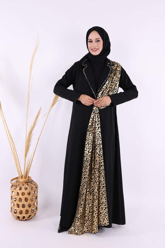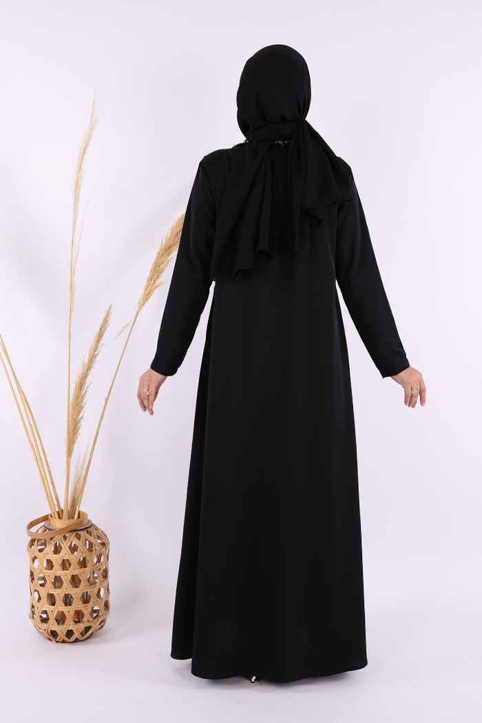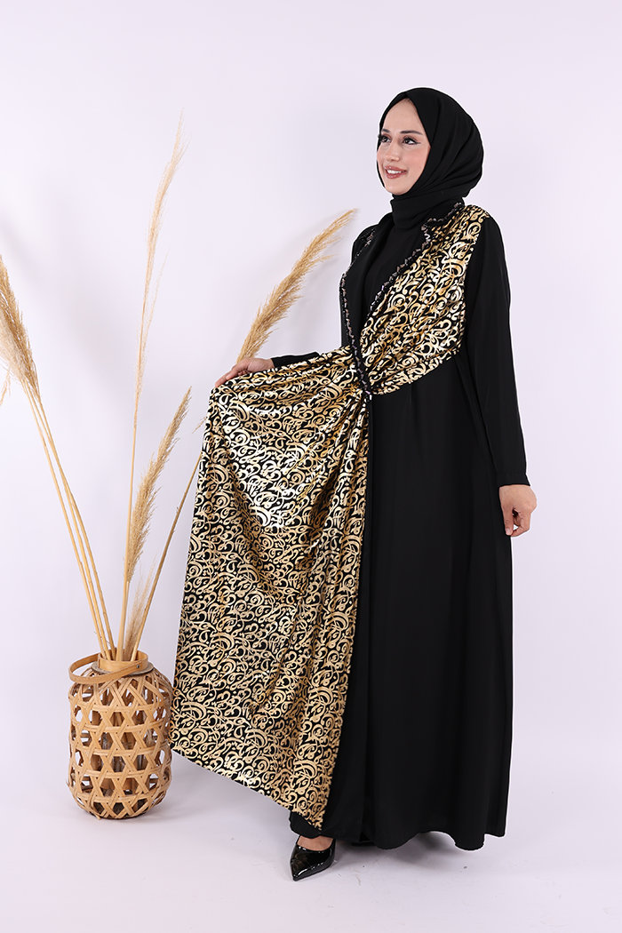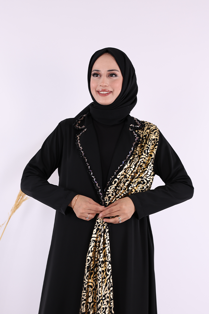 Arapça Harf Baskı Detaylı Abaya 70015 Siyah