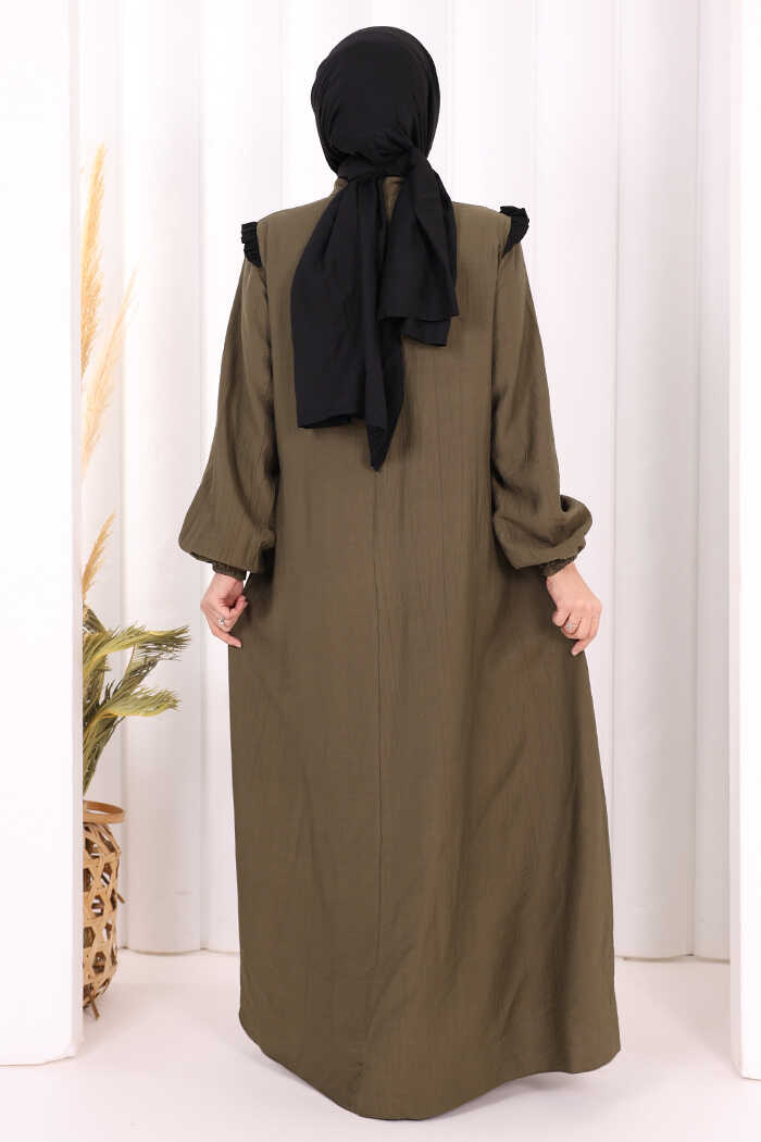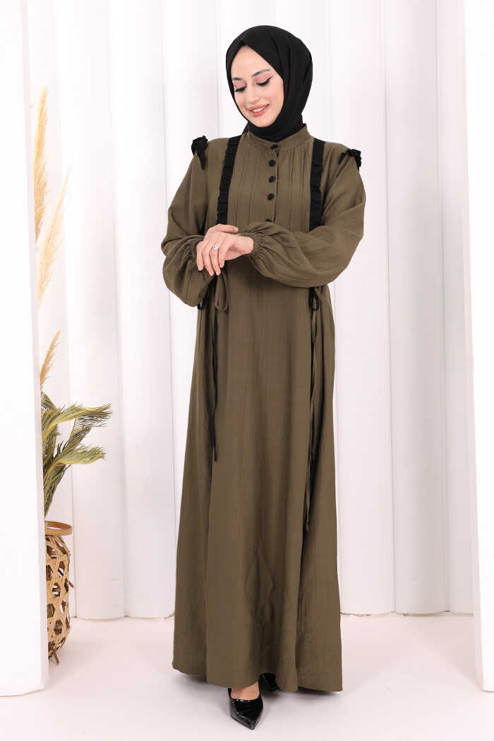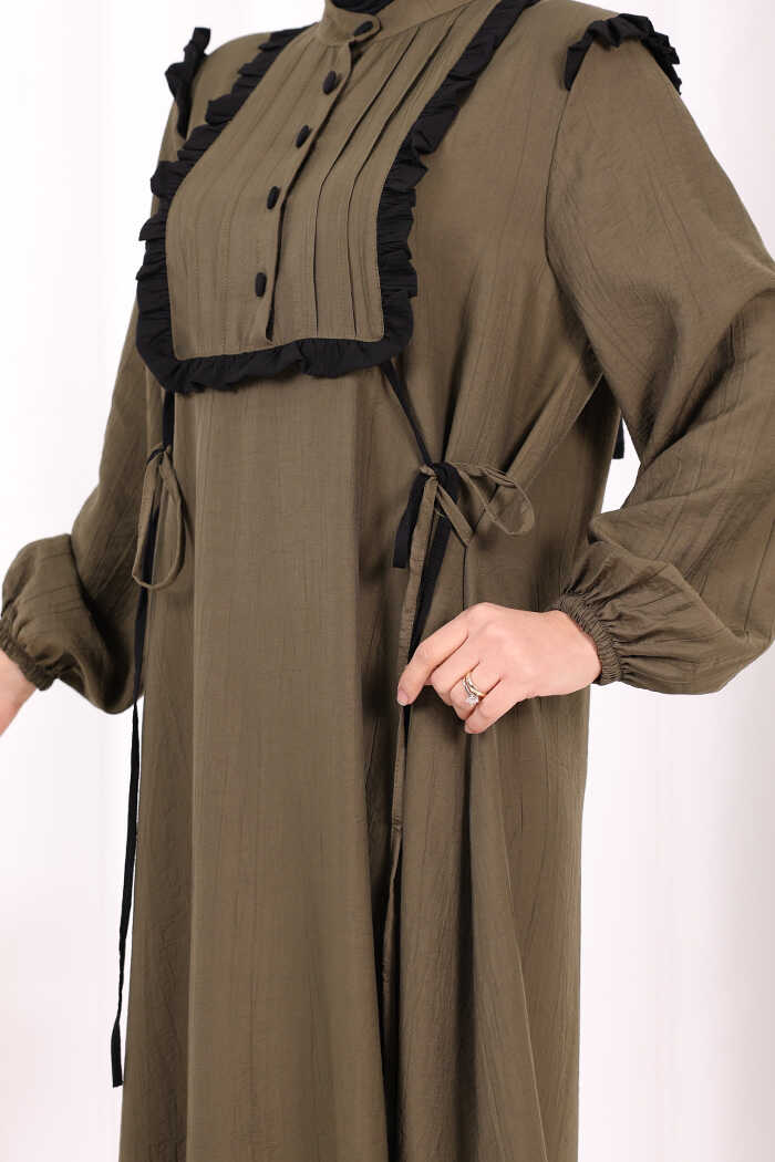 Bağlamalı ve Fırfır Detaylı Elbise 6064 Haki