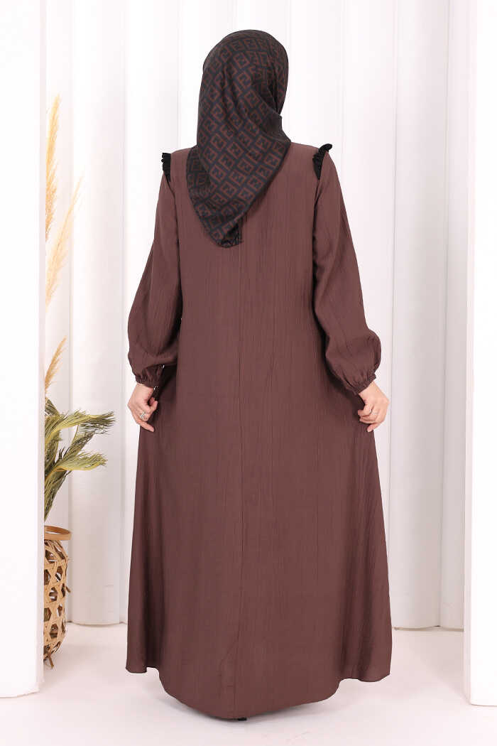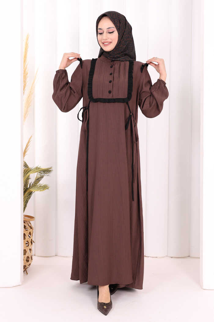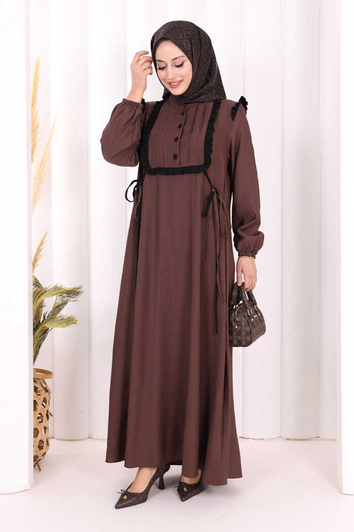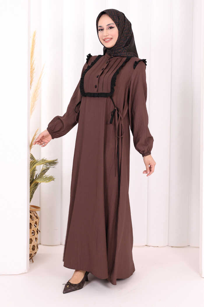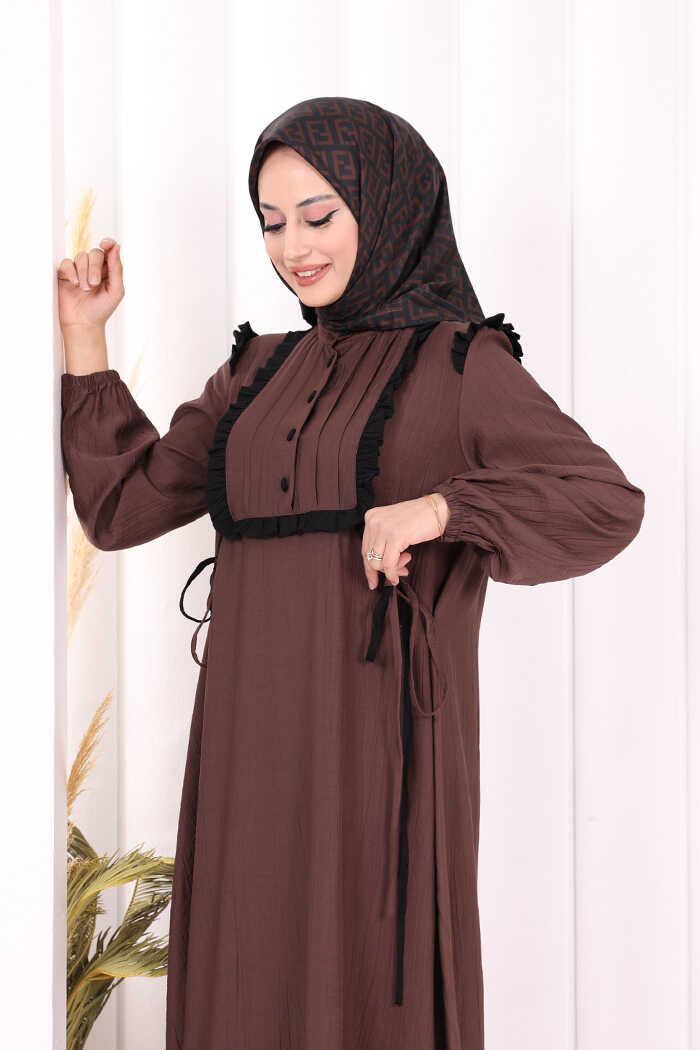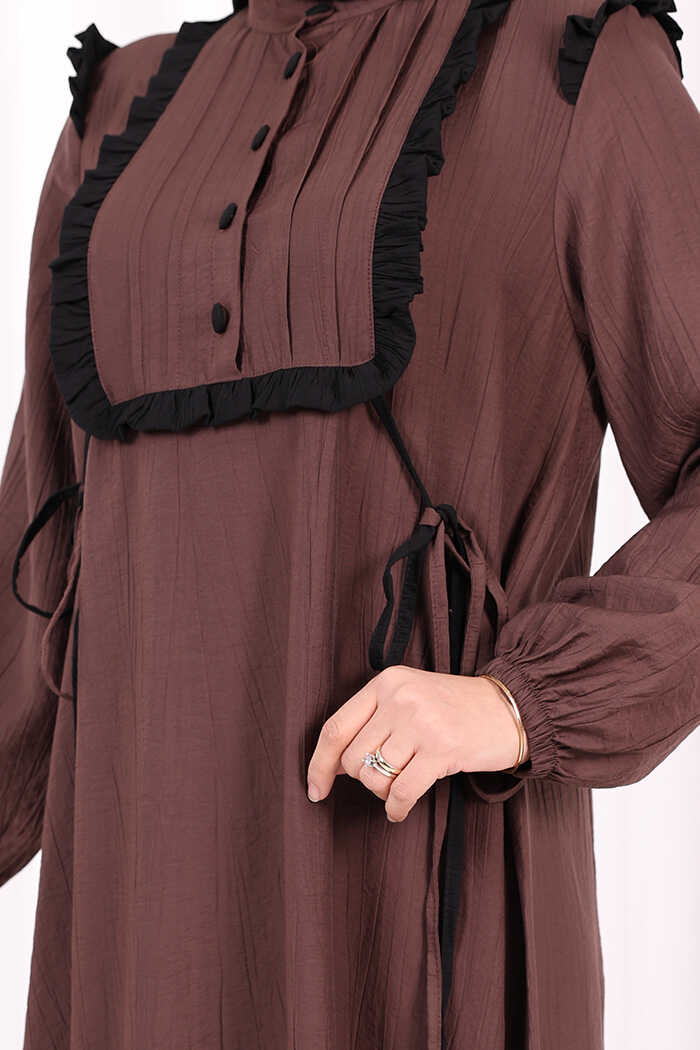 Bağlamalı ve Fırfır Detaylı Elbise 6064 Kahverengi